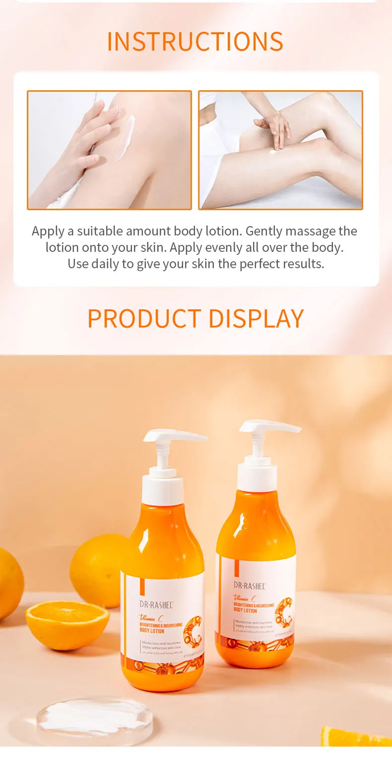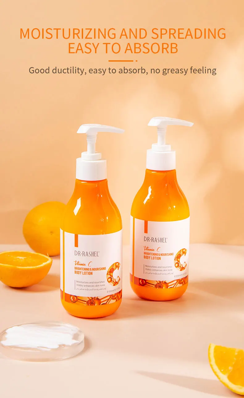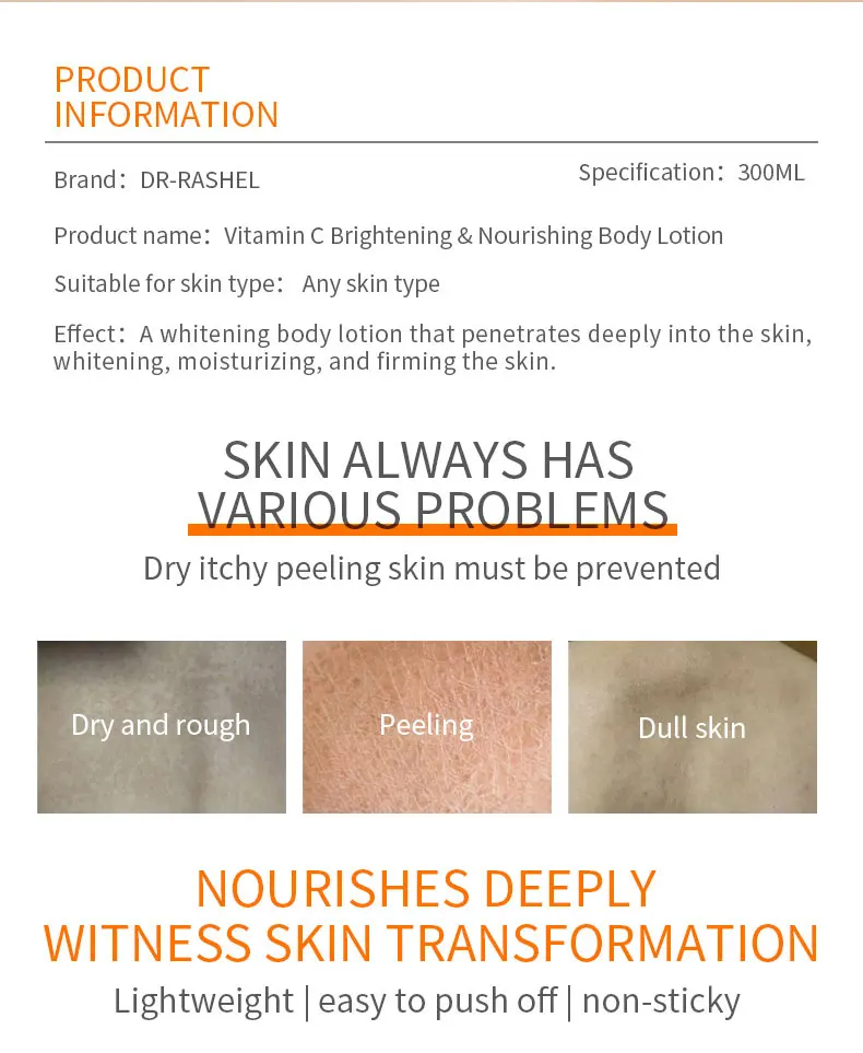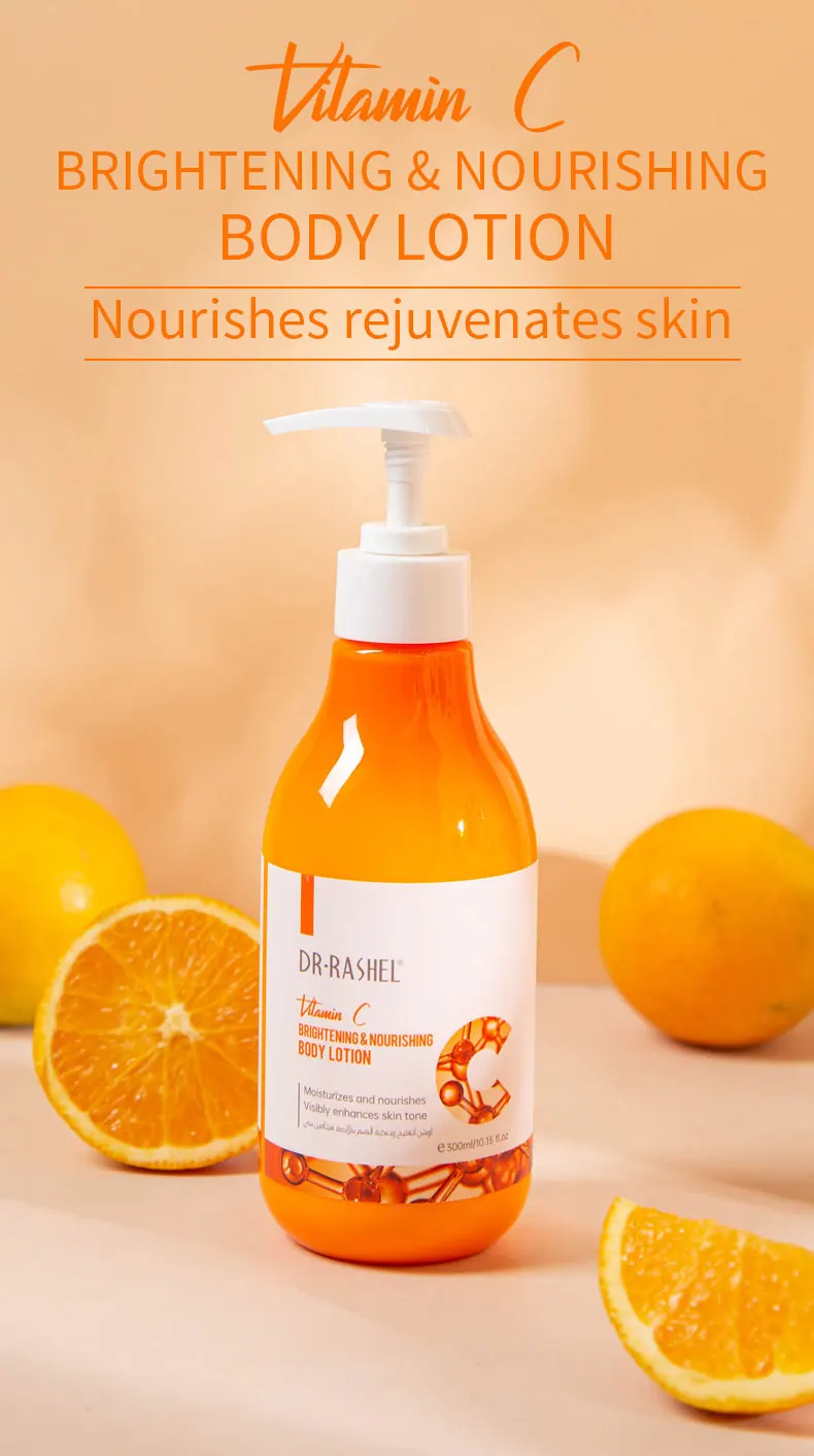 DR.RASHEL Body Whitening Cream Vitamin C Body Lotion Brightening Nourishing Moisturizing Smooth Skin Lightening Cream 300ml