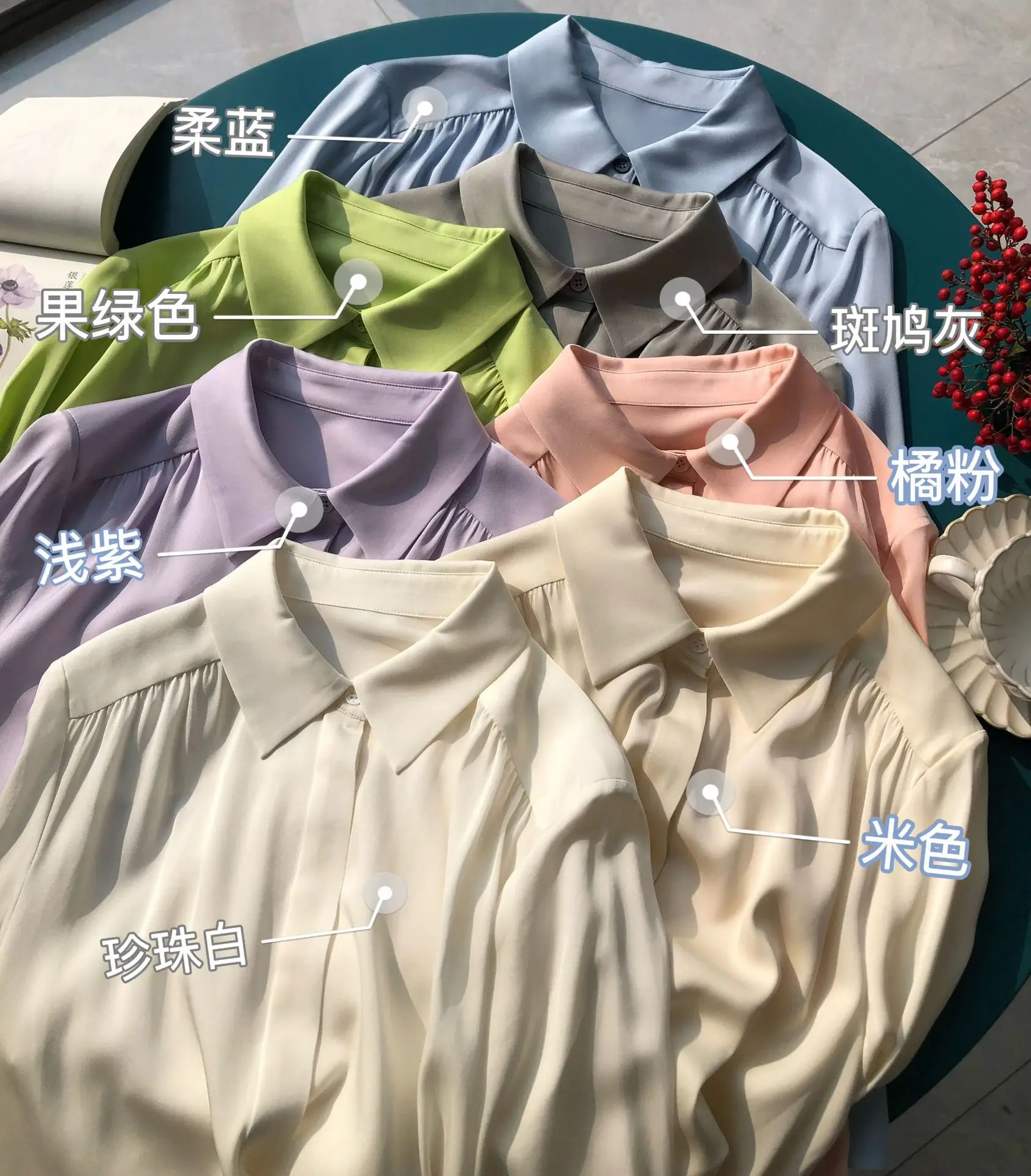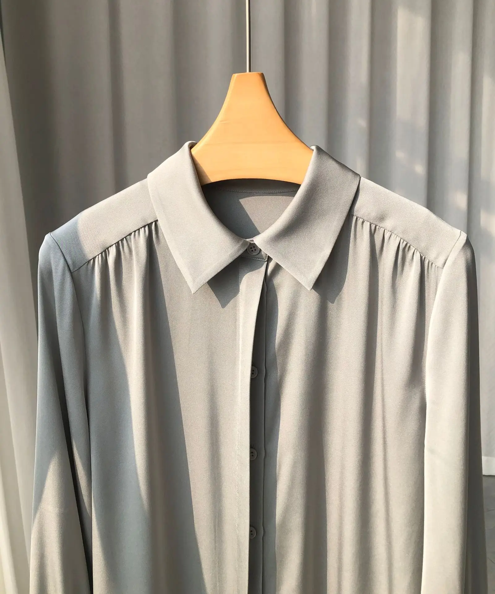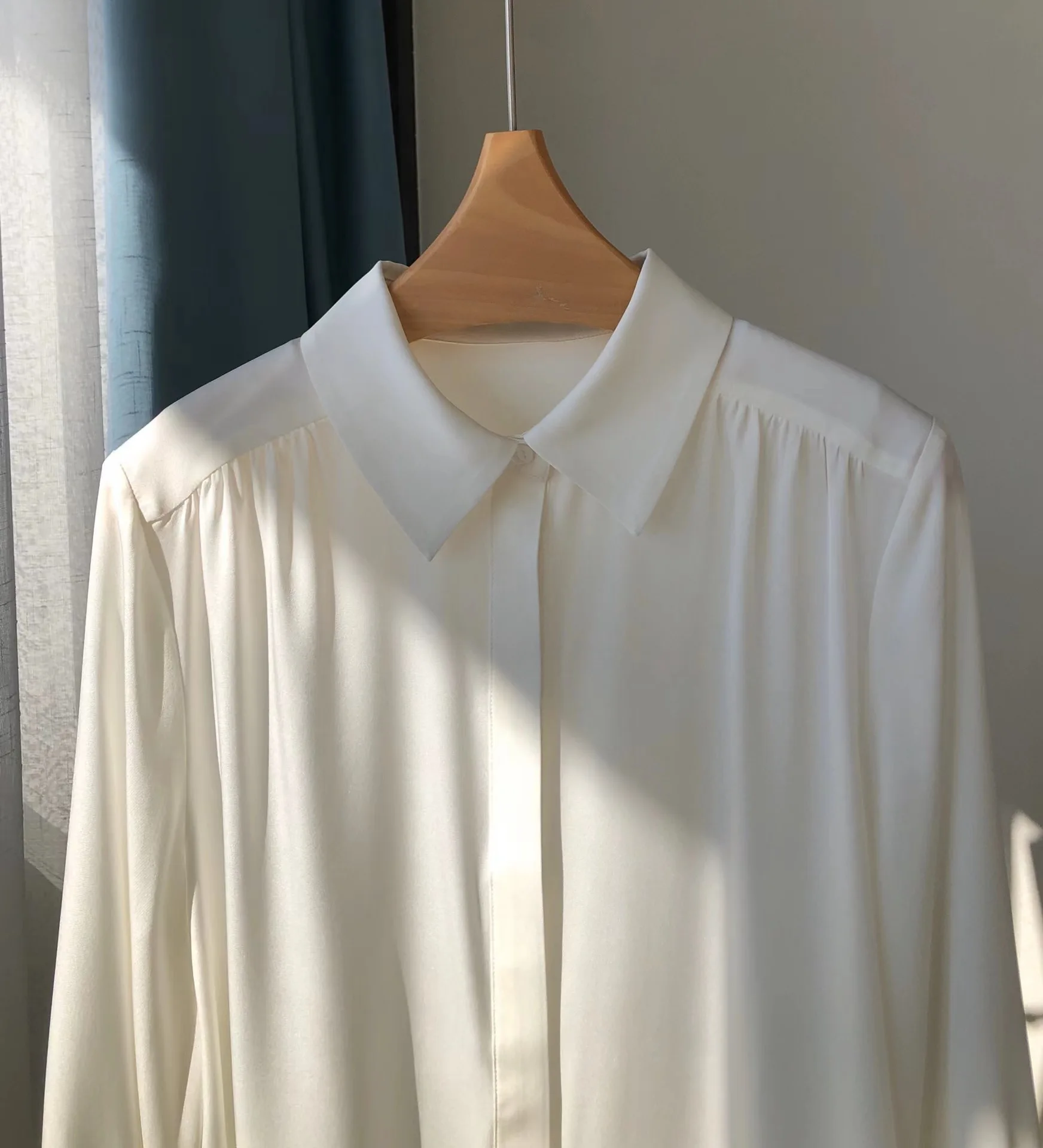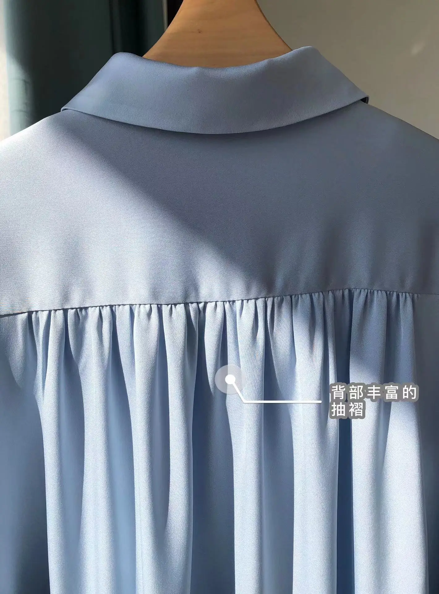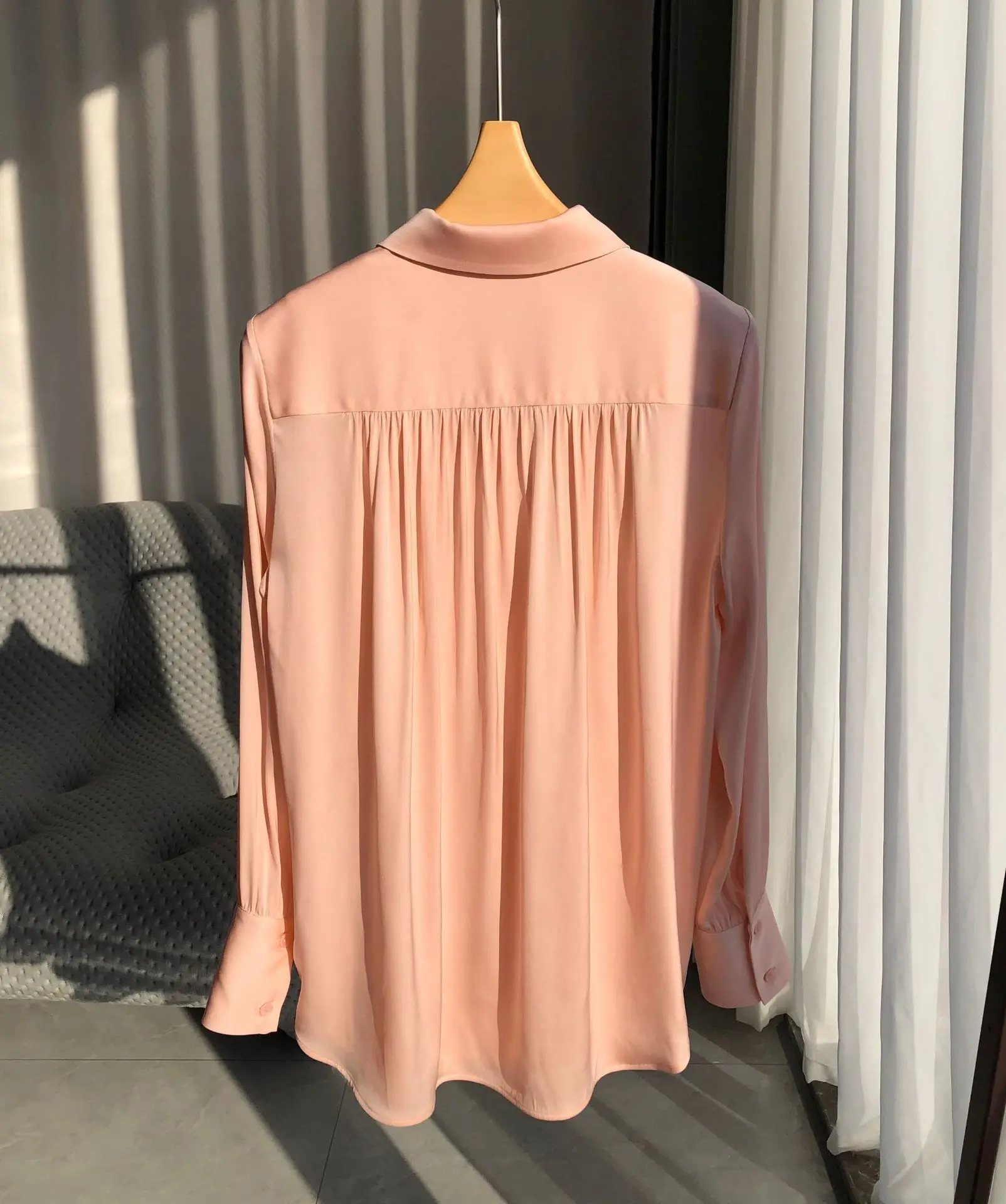 Elegant and Simple Smooth Double Joe Satin Pleated Silk Shirt Elegant Restrained Womens Silk Blouse Mulberry Silk Shirt