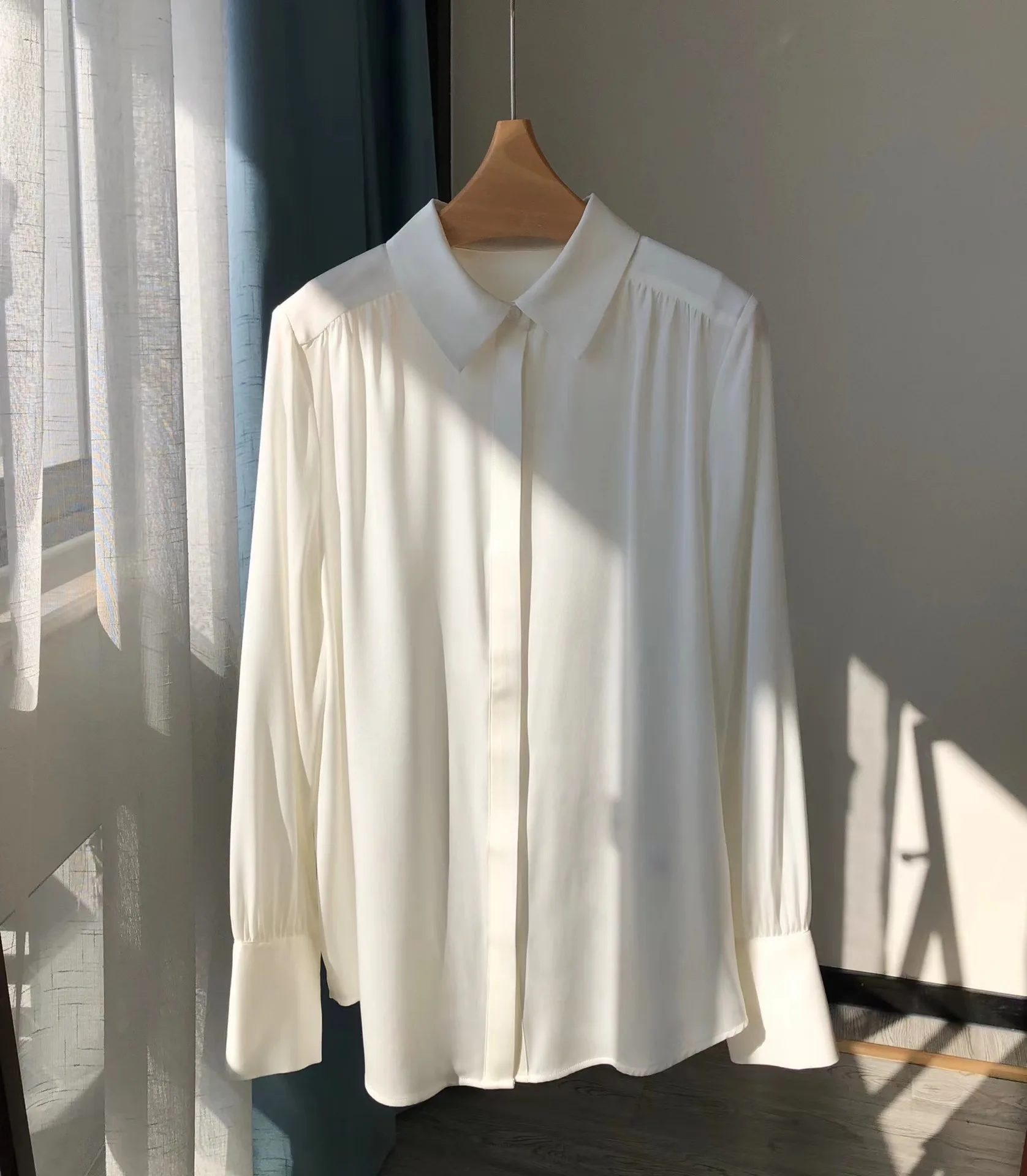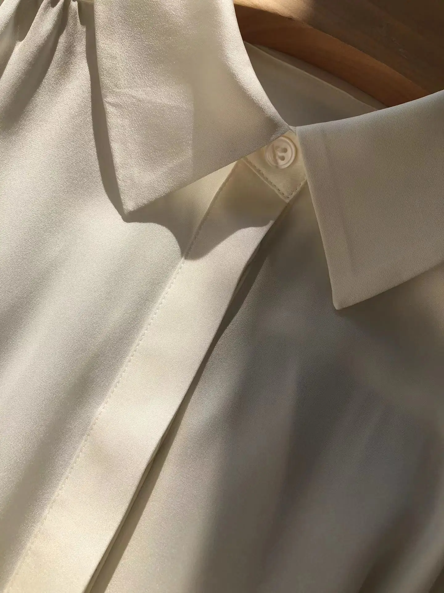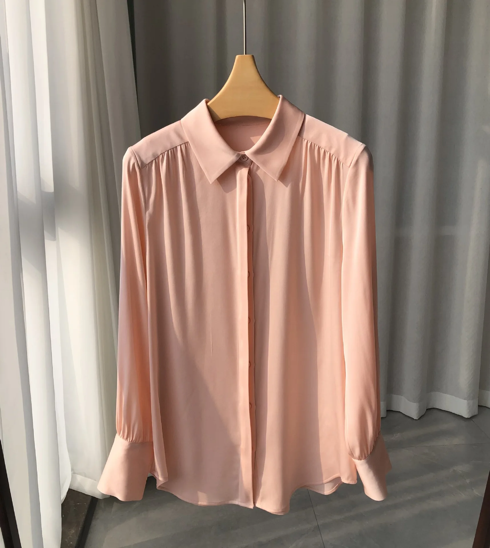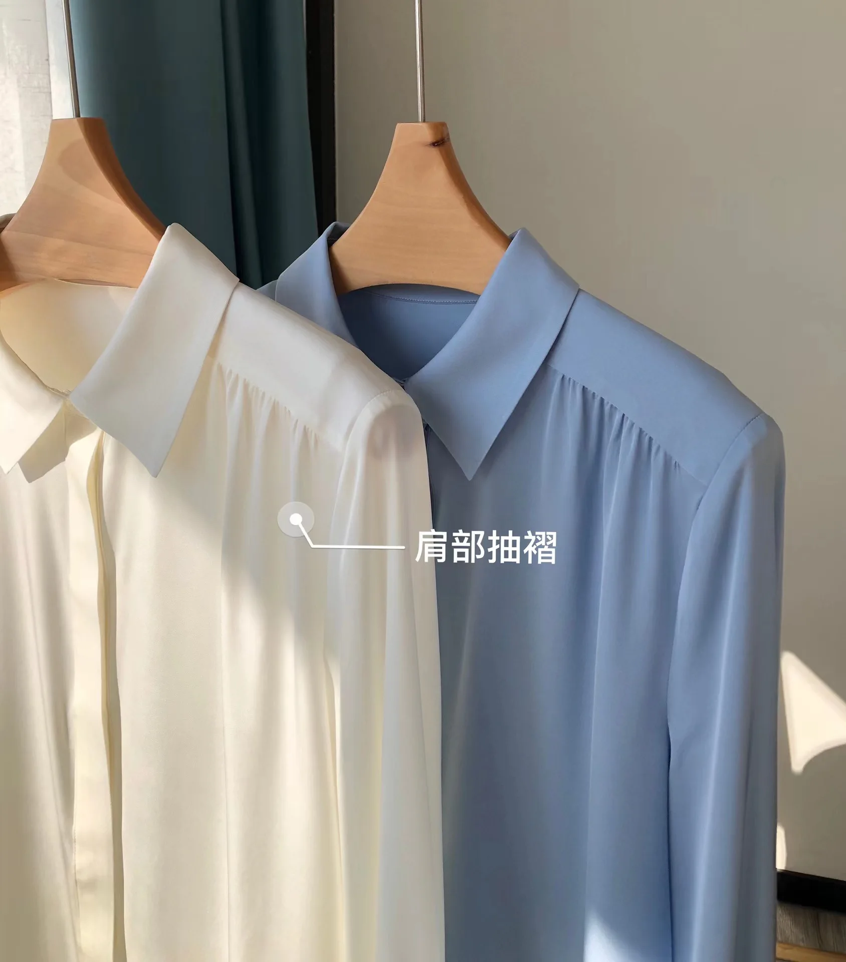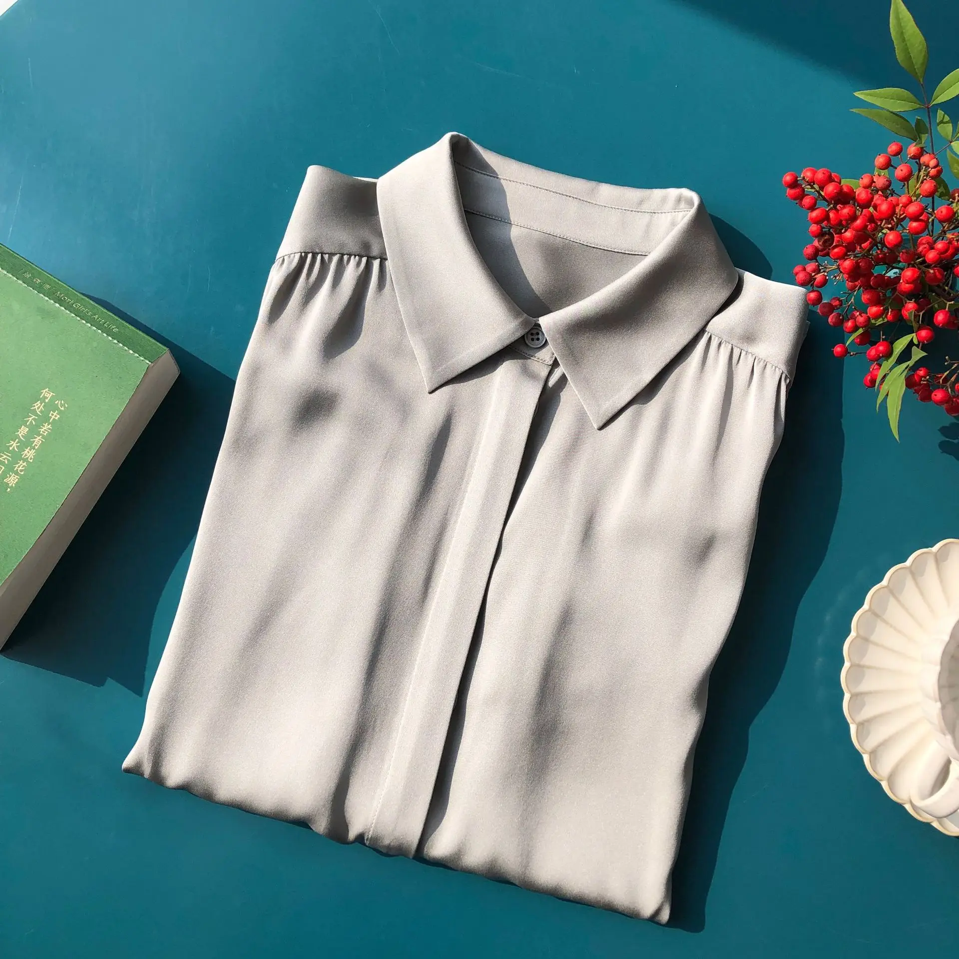 Elegant and Simple Smooth Double Joe Satin Pleated Silk Shirt Elegant Restrained Womens Silk Blouse Mulberry Silk Shirt