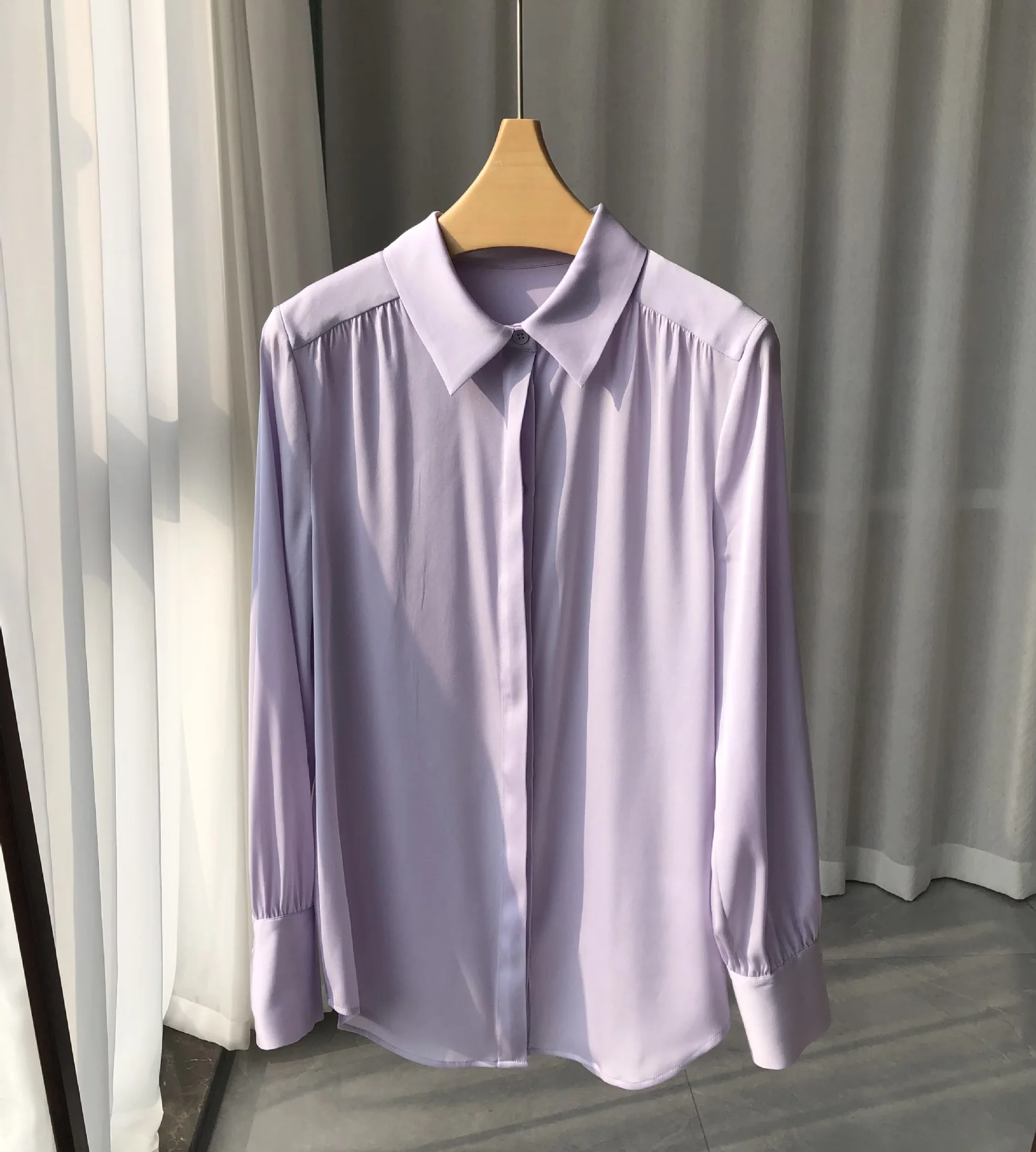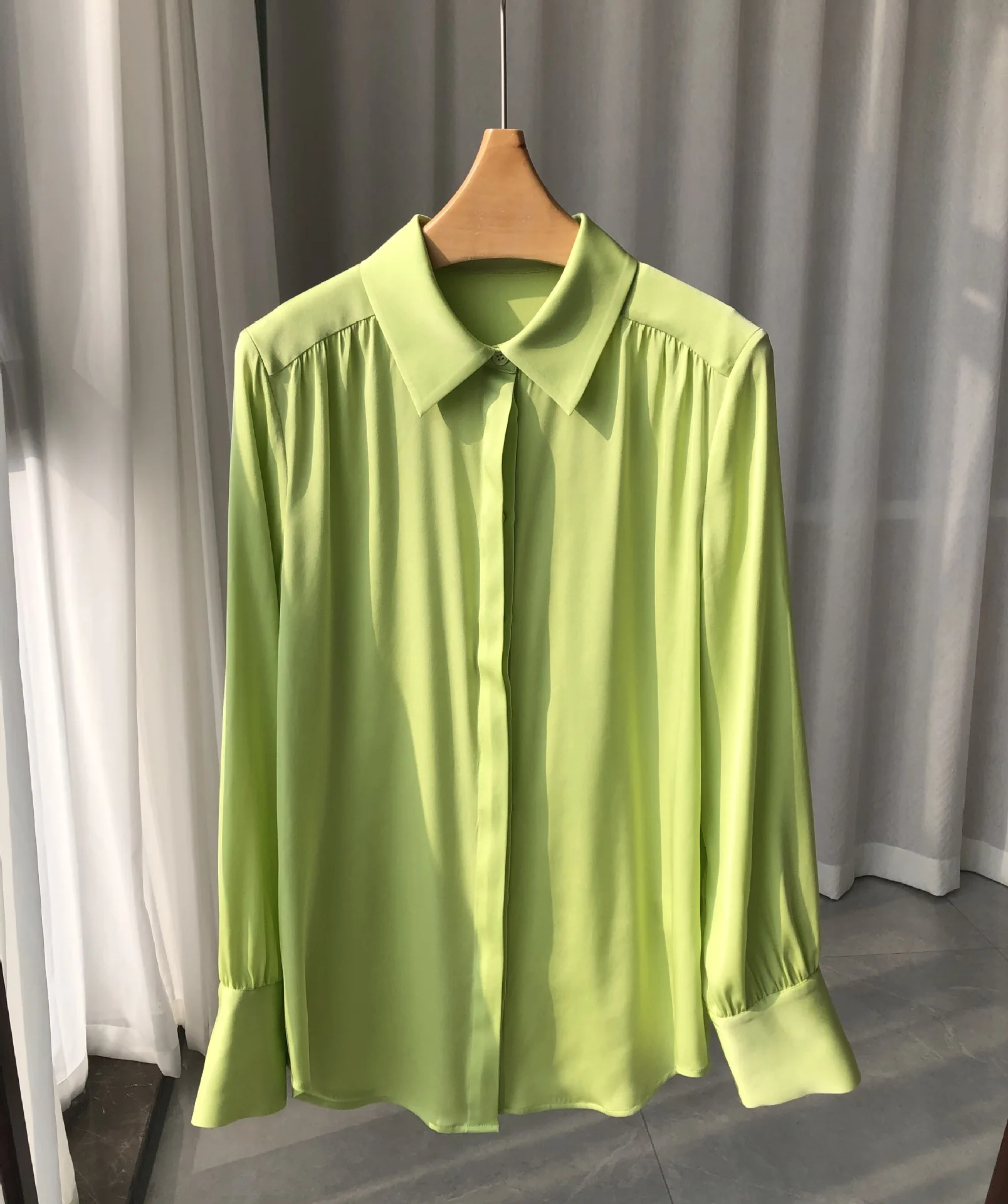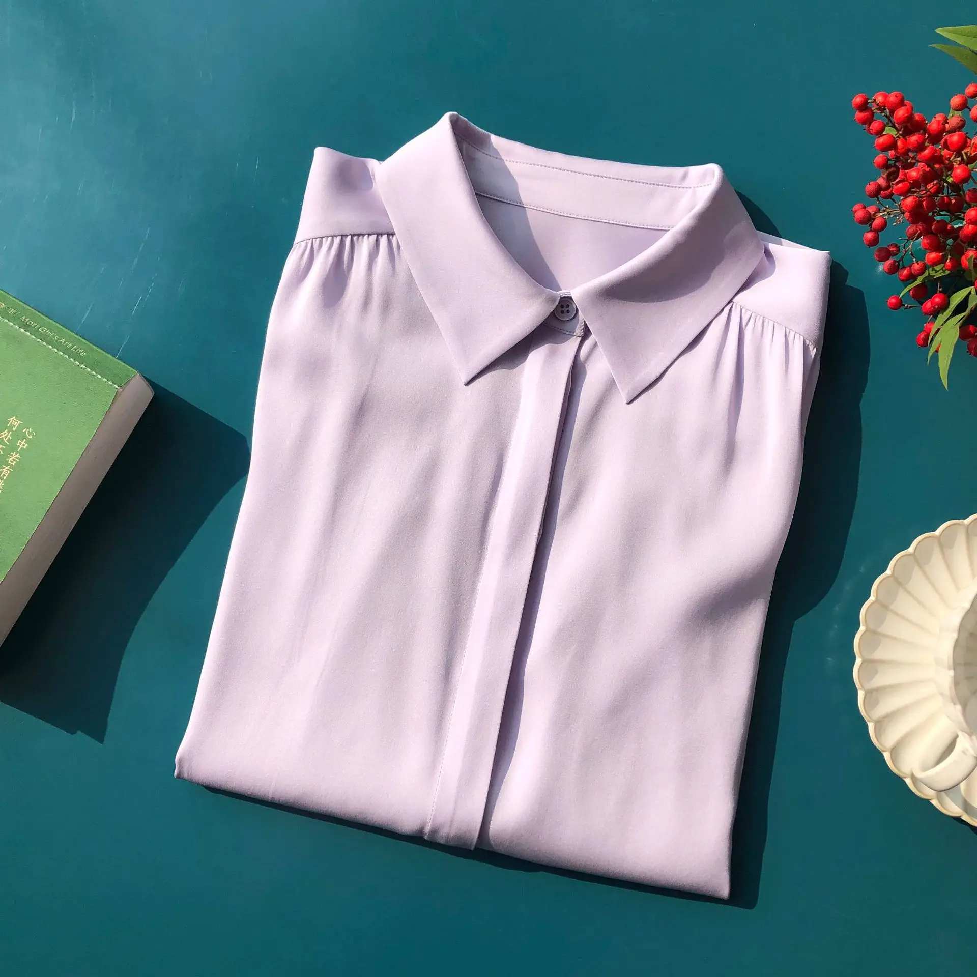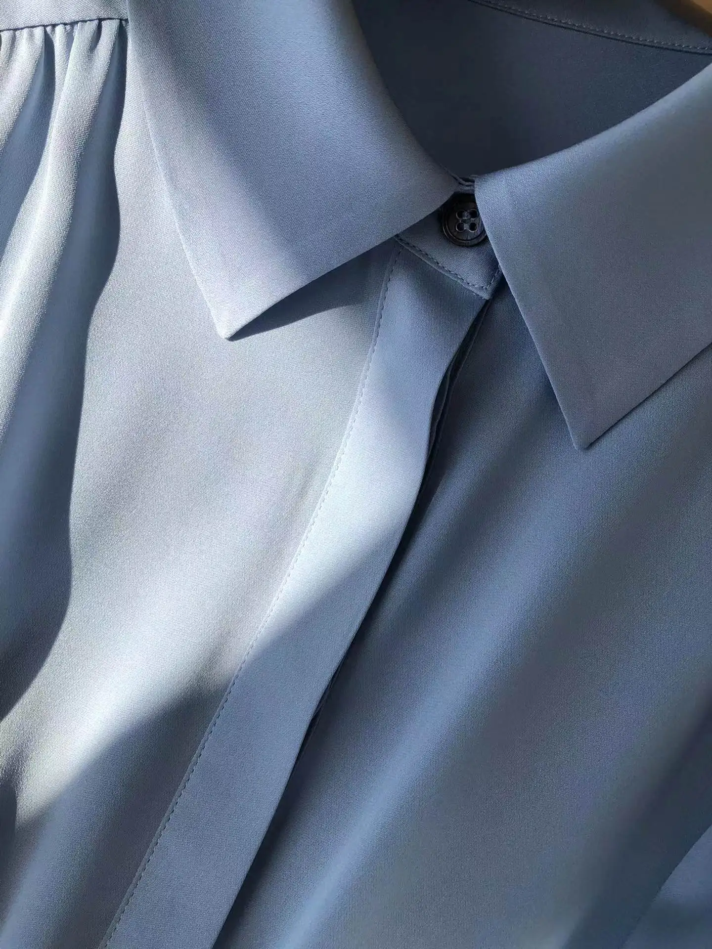 Elegant and Simple Smooth Double Joe Satin Pleated Silk Shirt Elegant Restrained Womens Silk Blouse Mulberry Silk Shirt