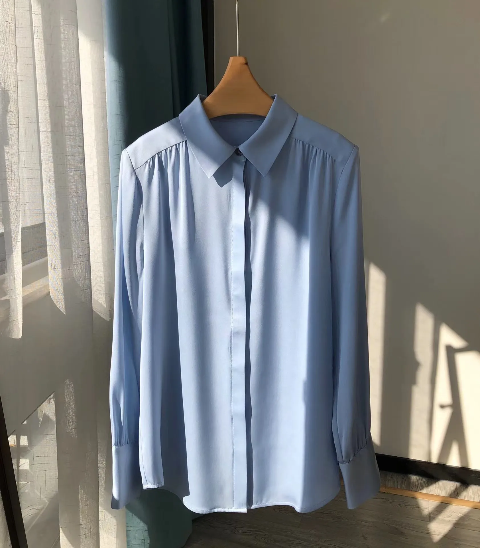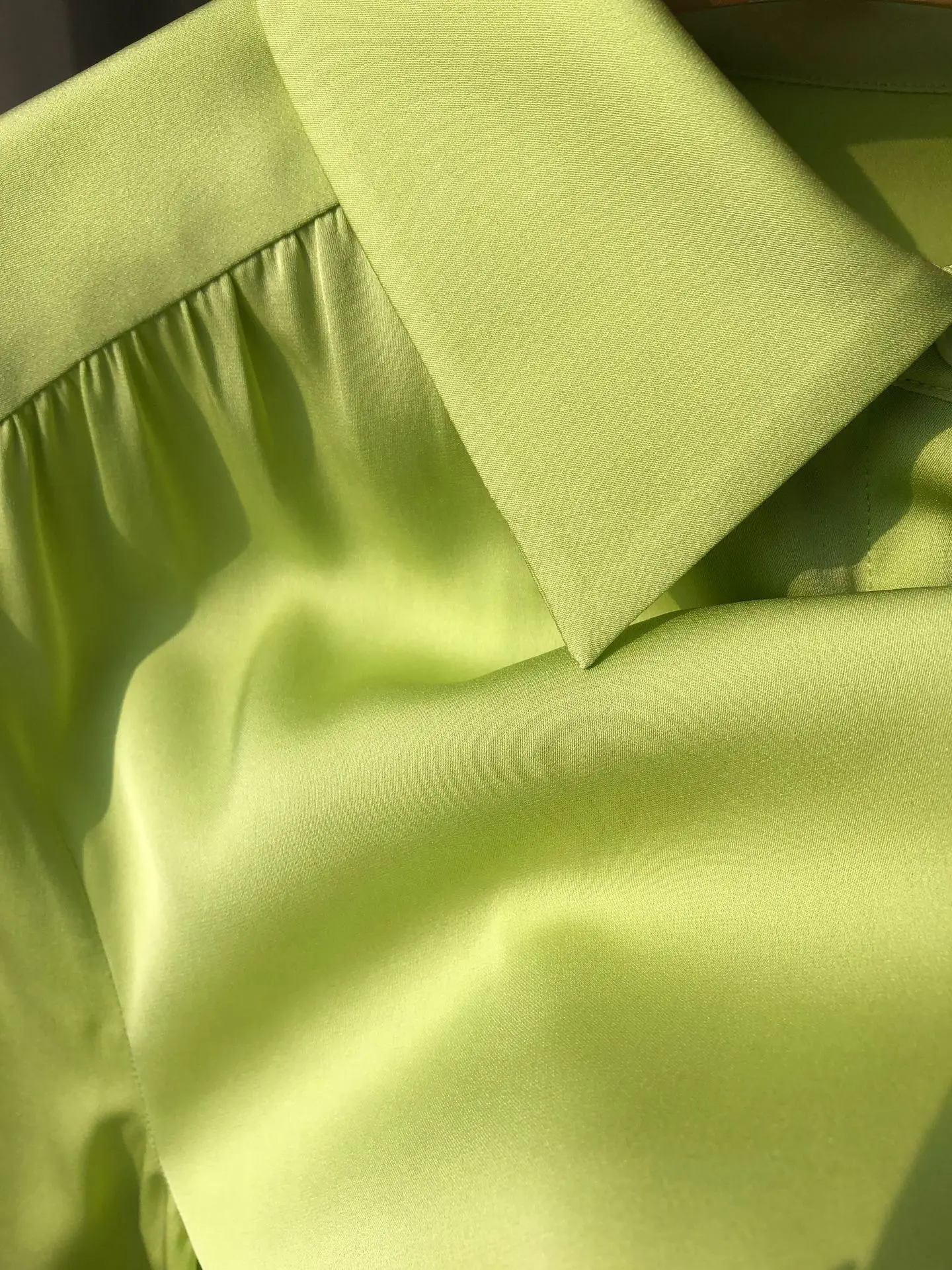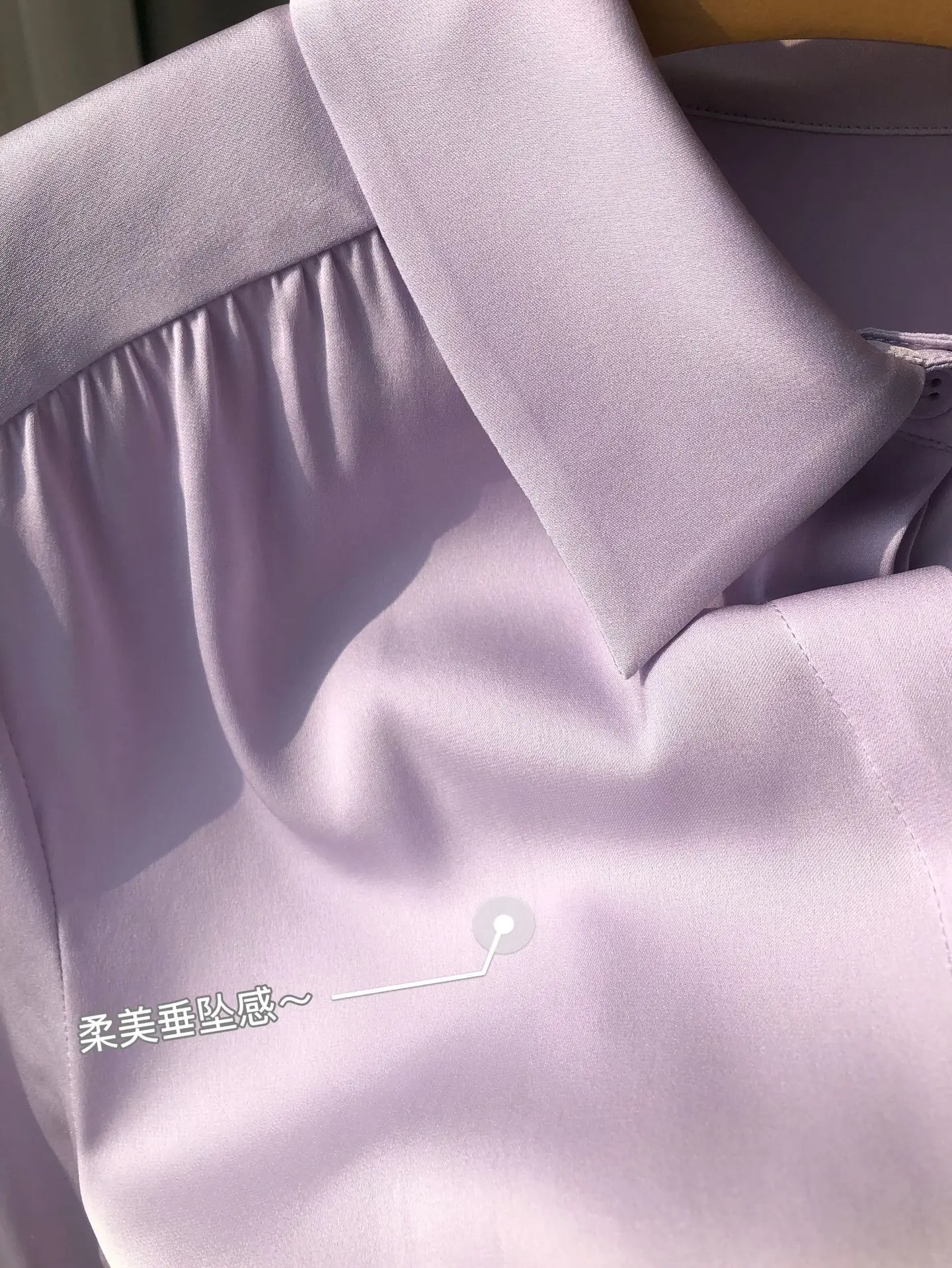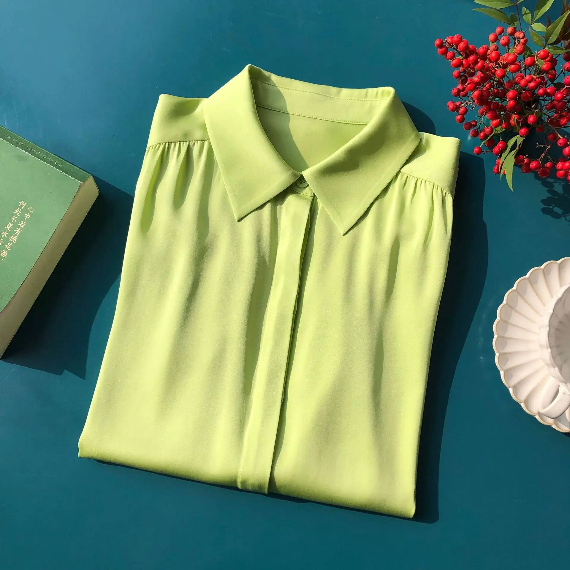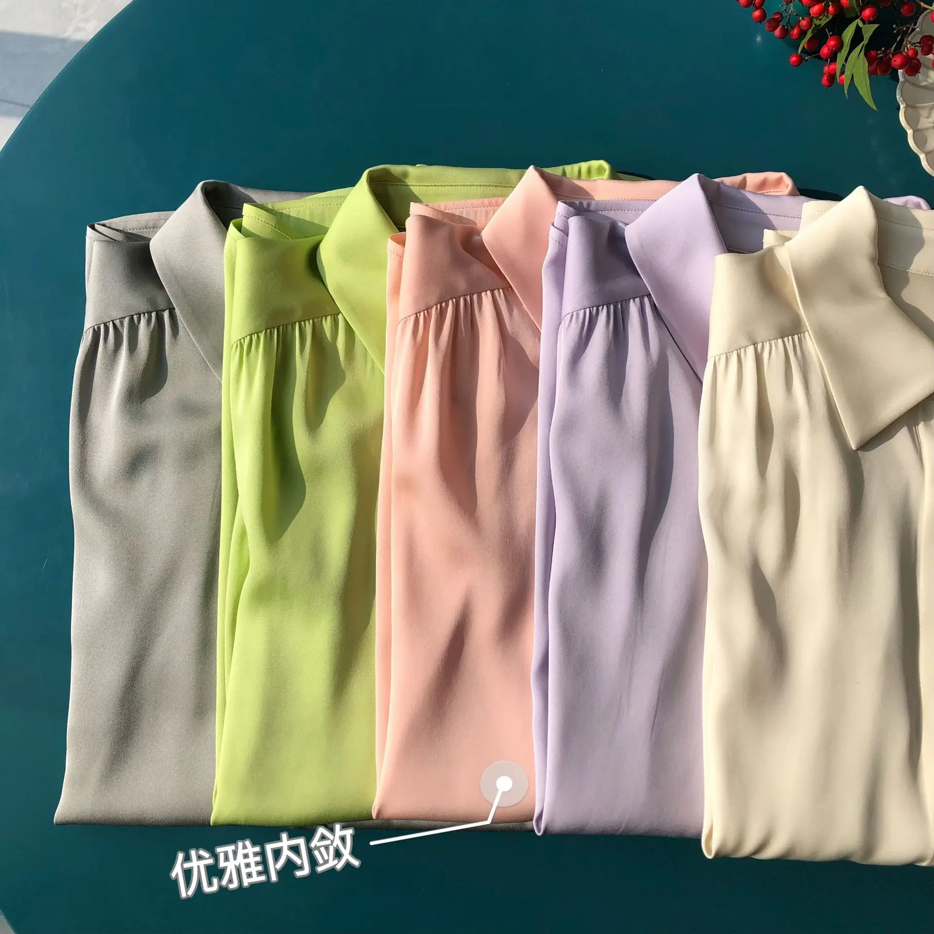 Elegant and Simple Smooth Double Joe Satin Pleated Silk Shirt Elegant Restrained Womens Silk Blouse Mulberry Silk Shirt