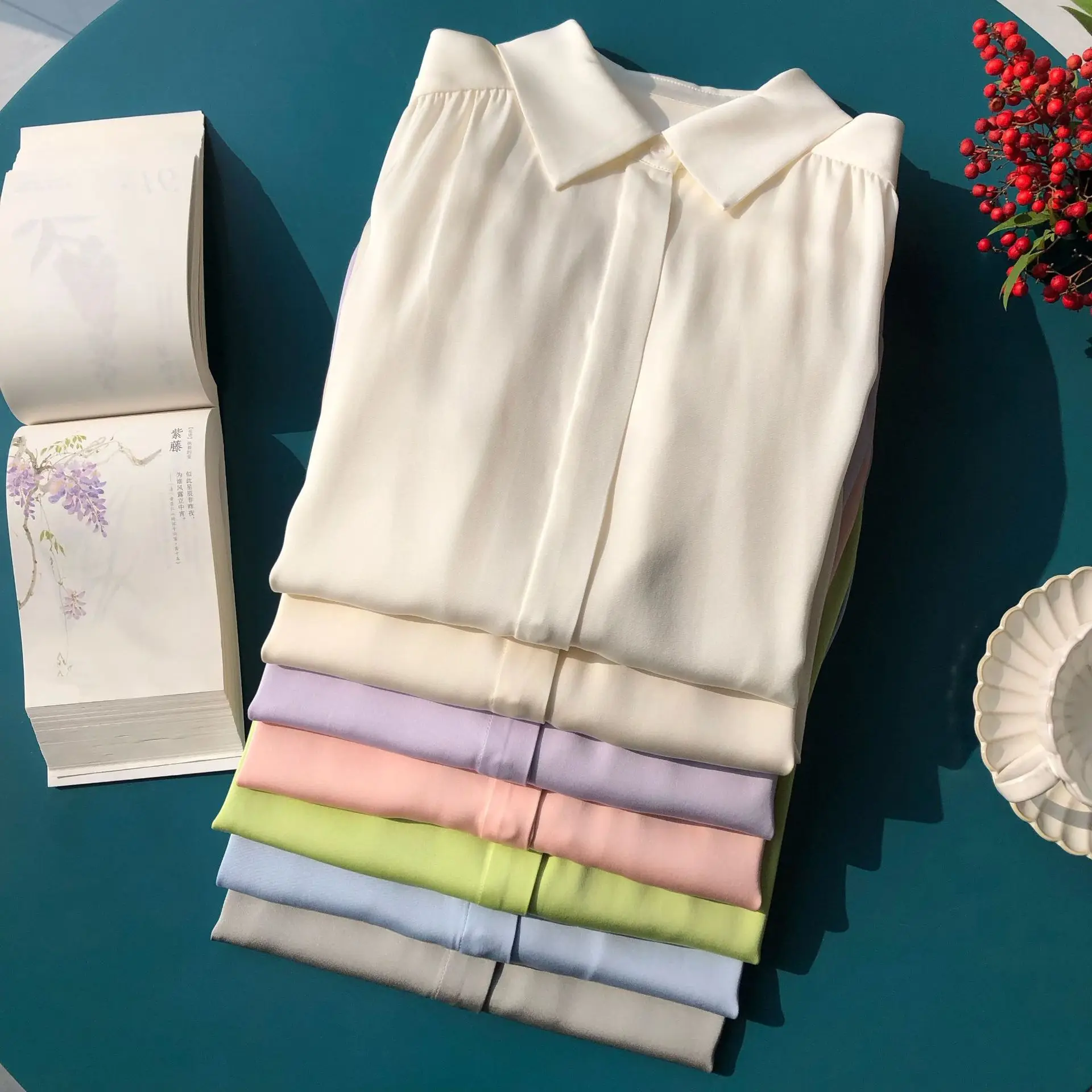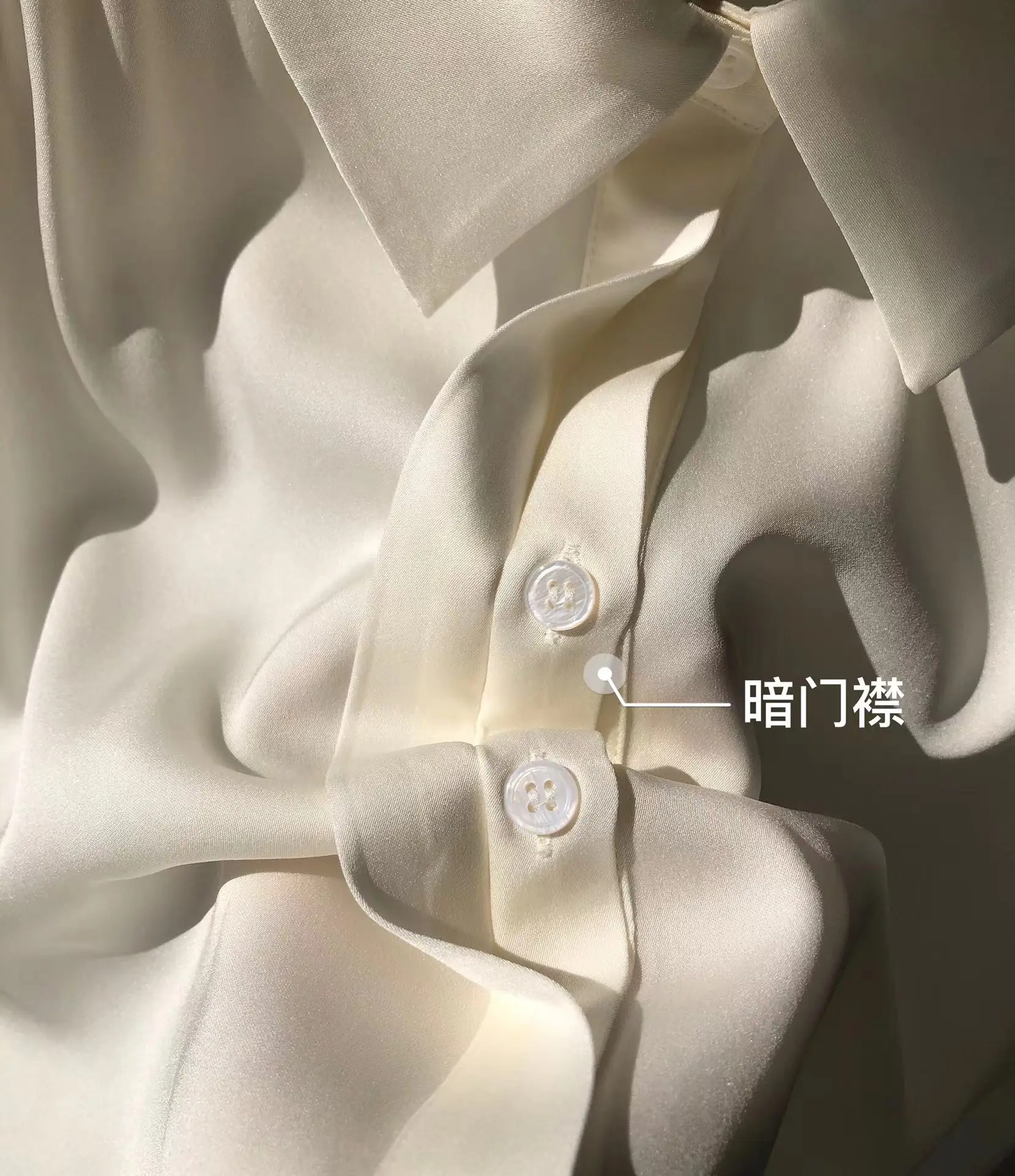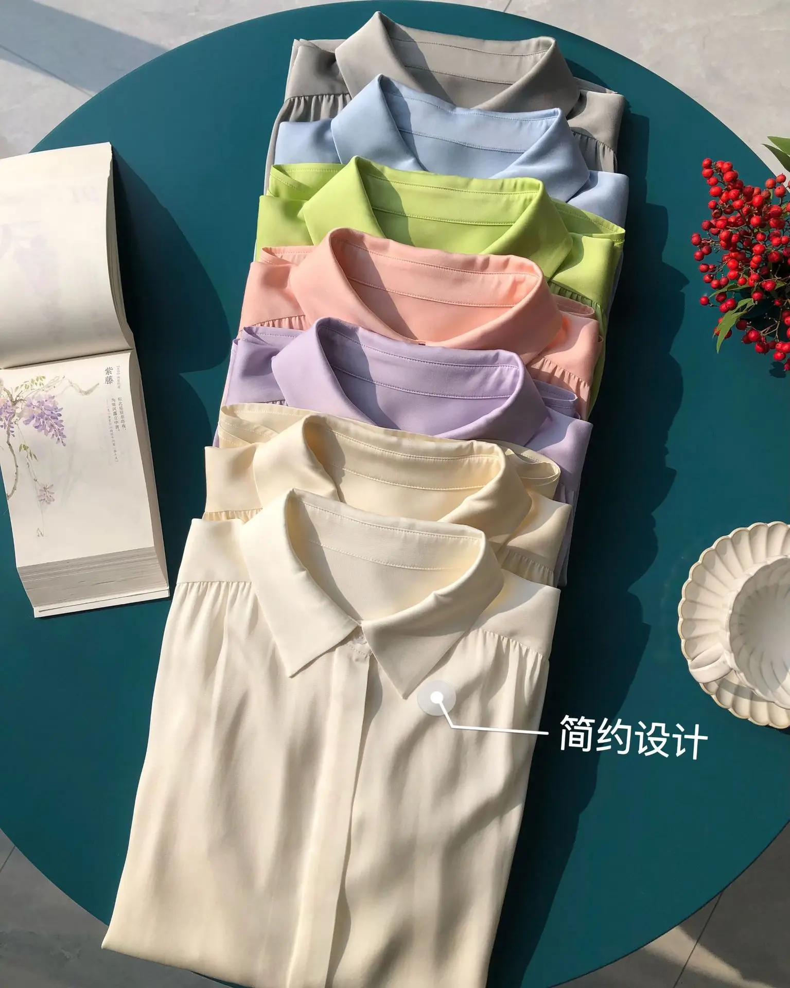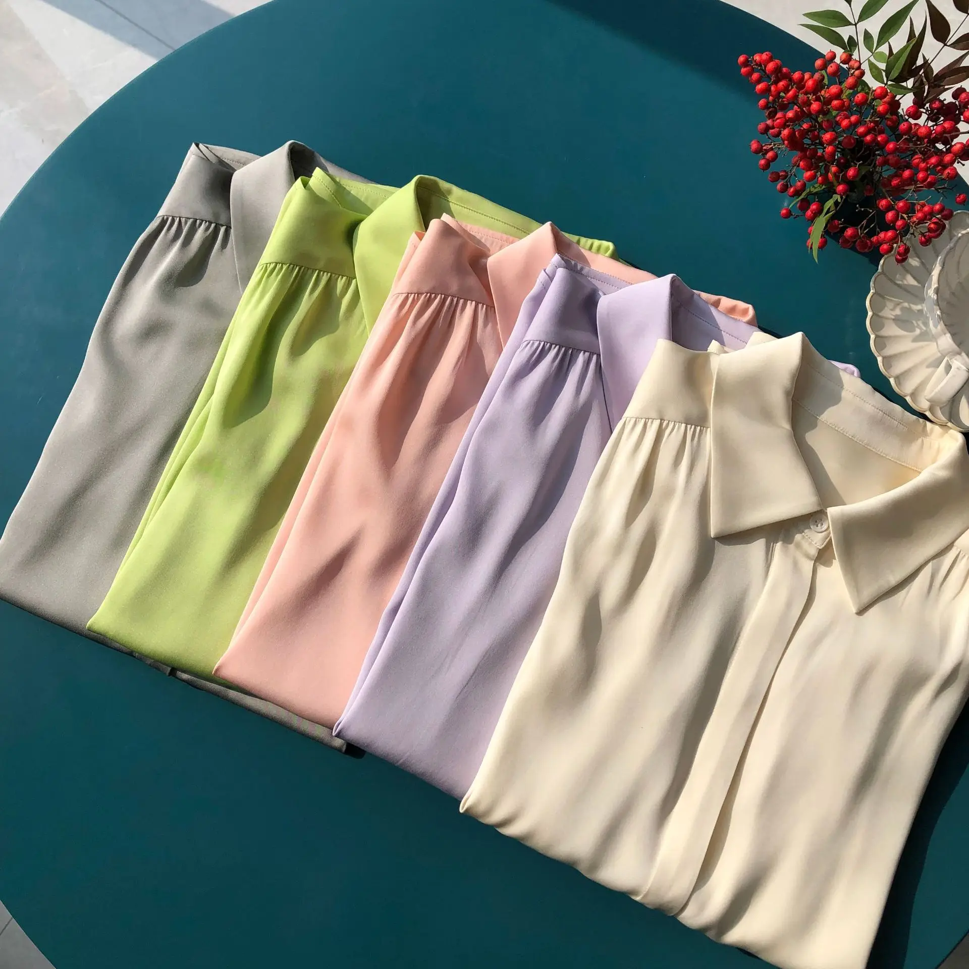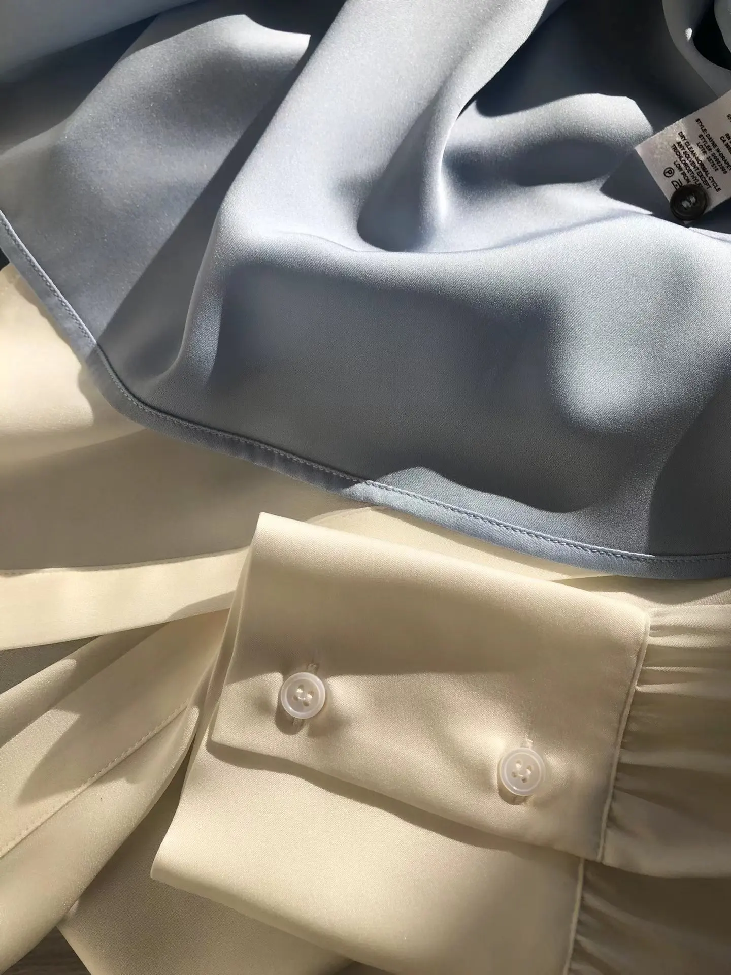Elegant and Simple Smooth Double Joe Satin Pleated Silk Shirt Elegant Restrained Womens Silk Blouse Mulberry Silk Shirt