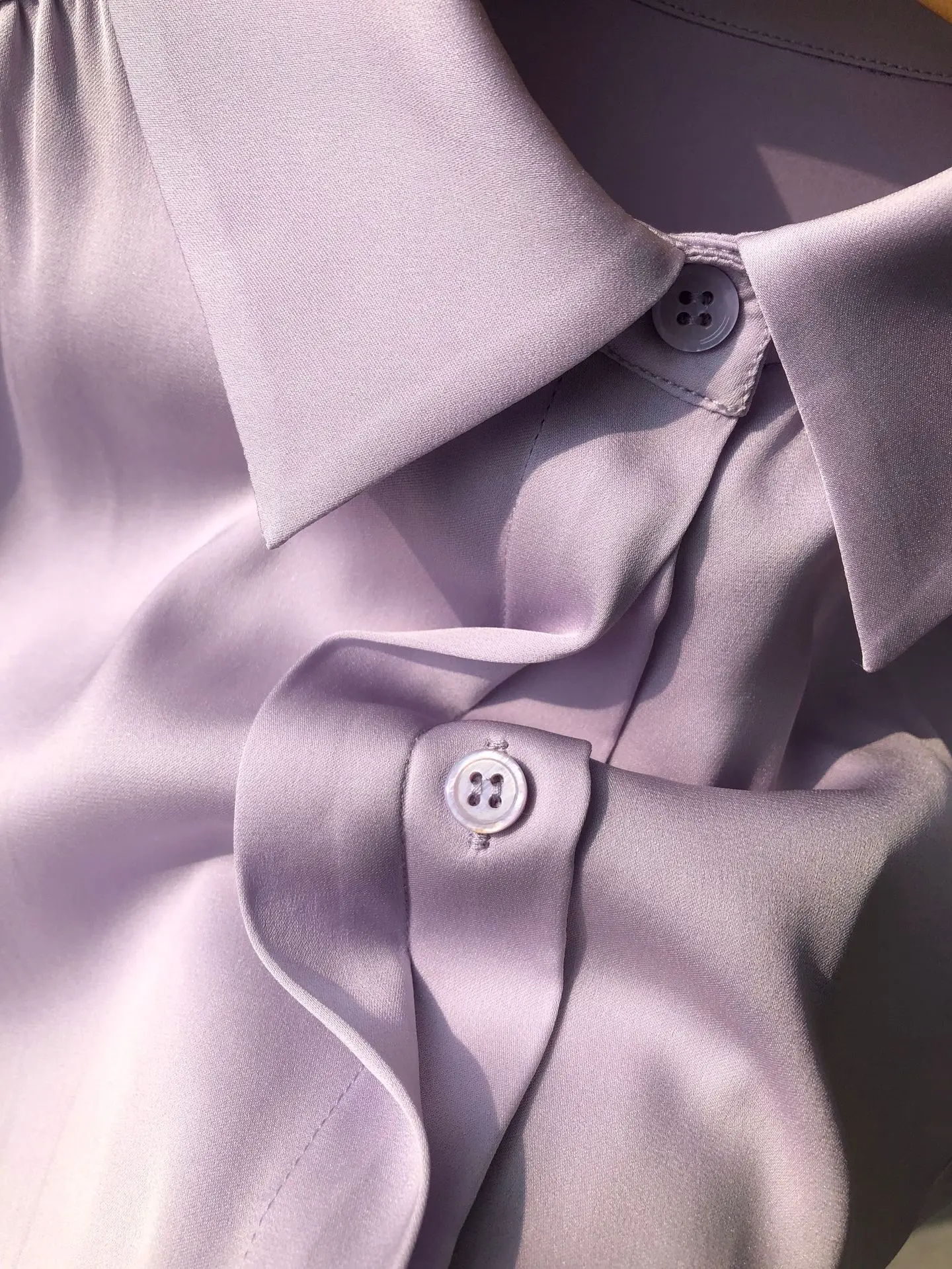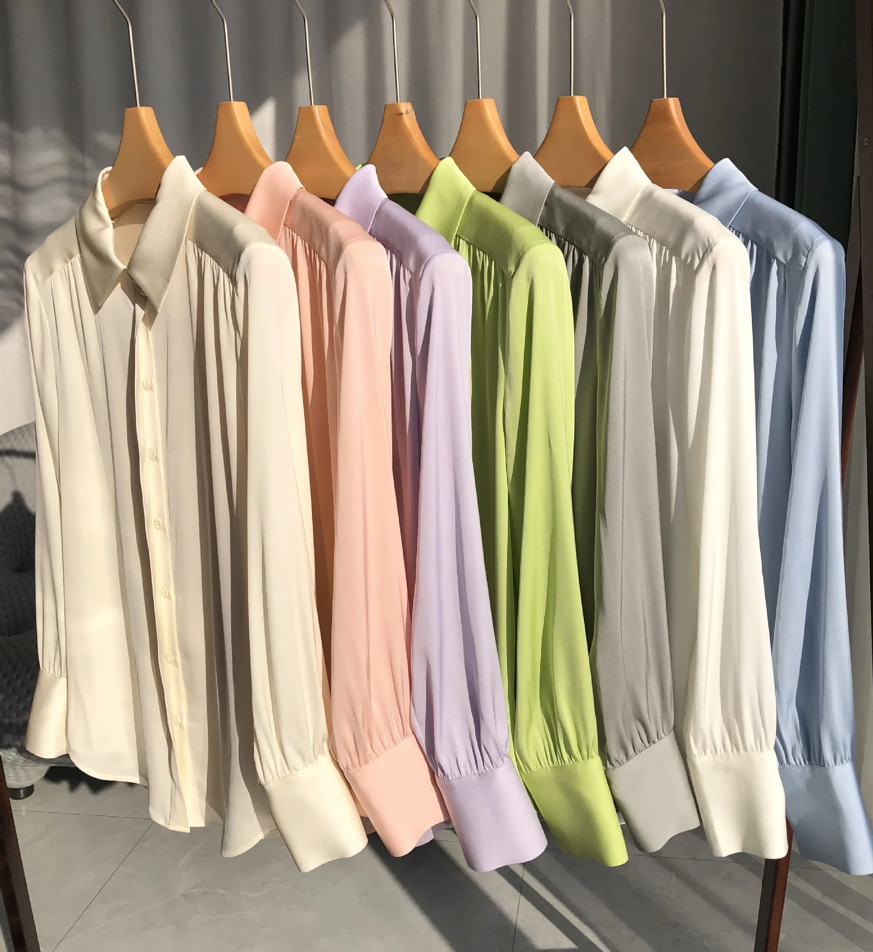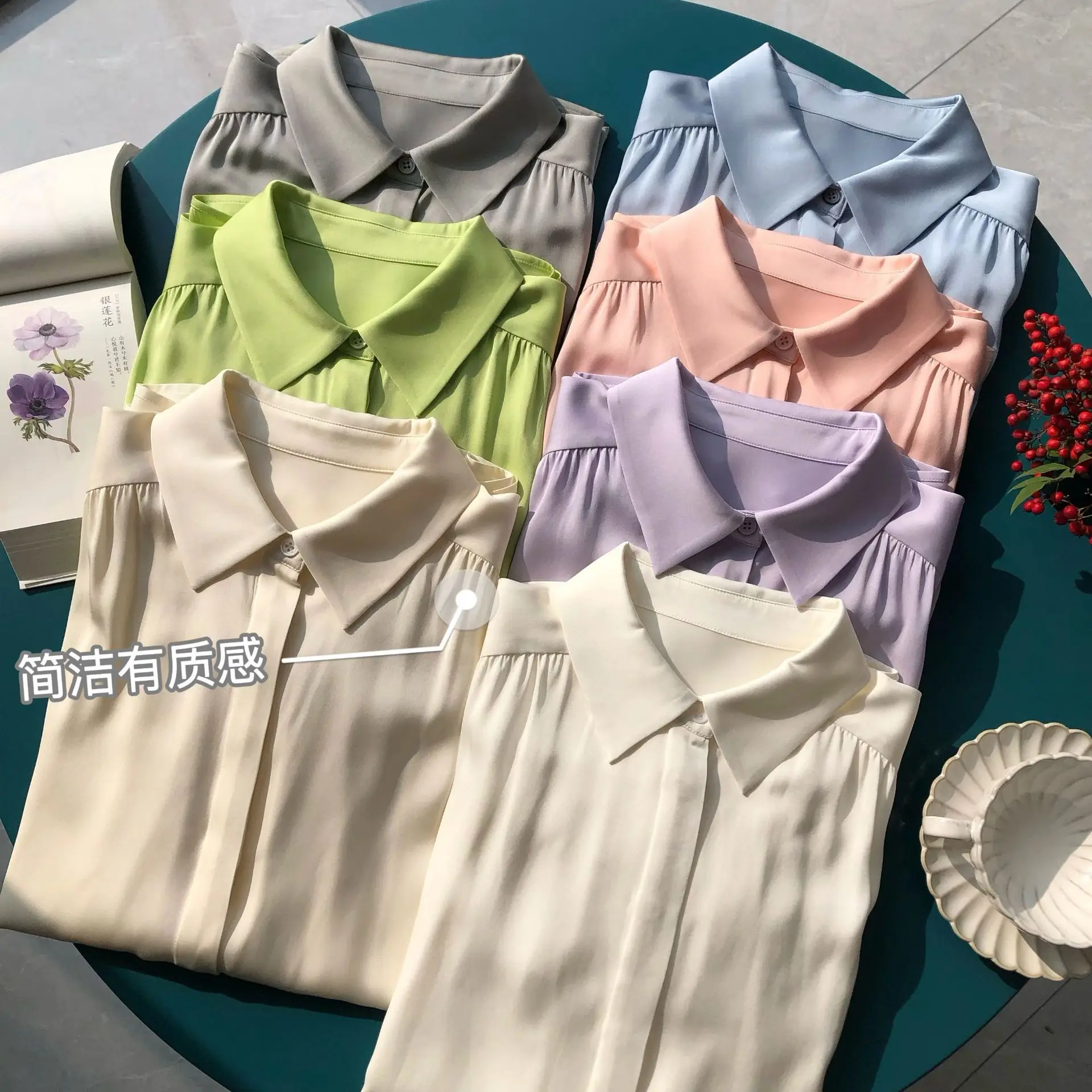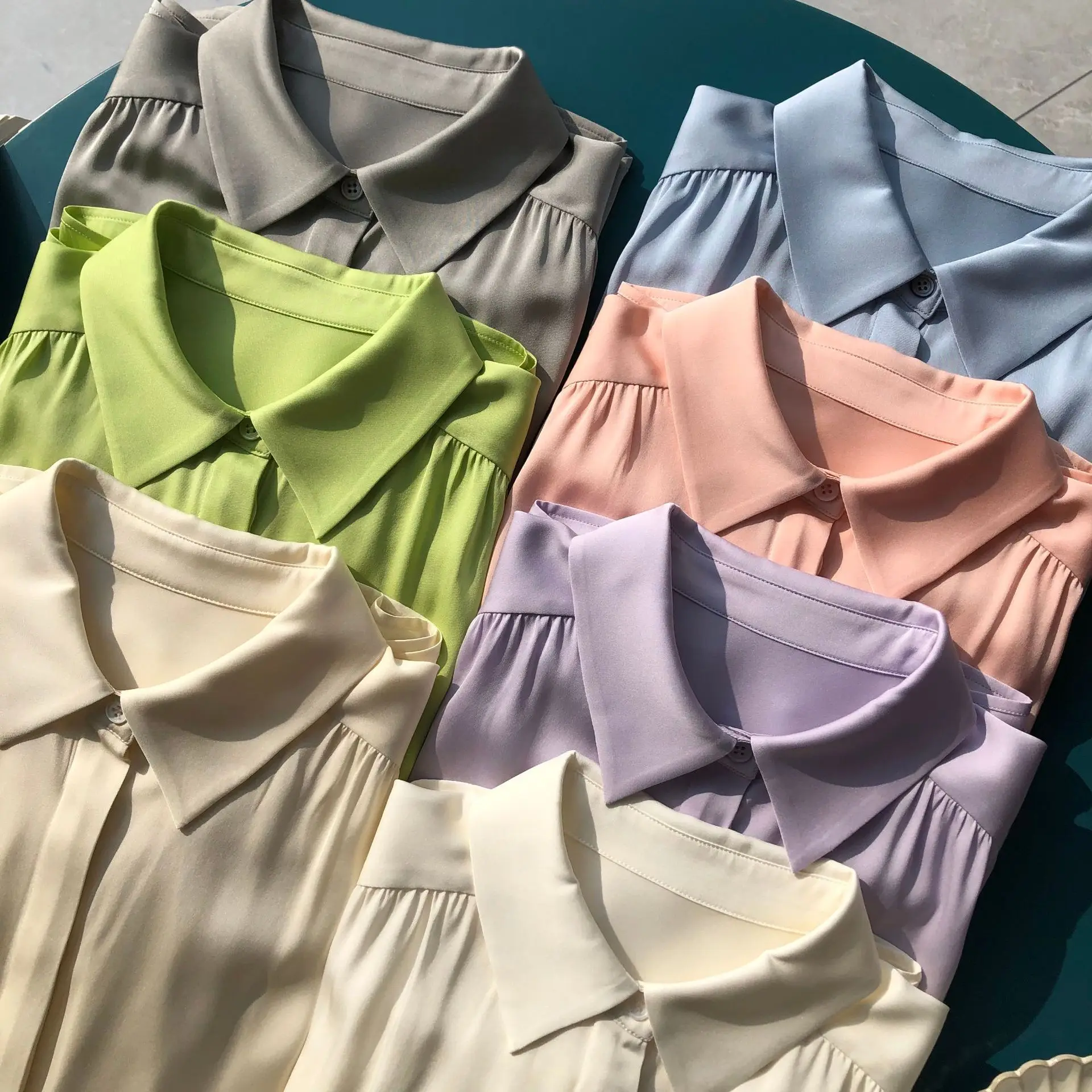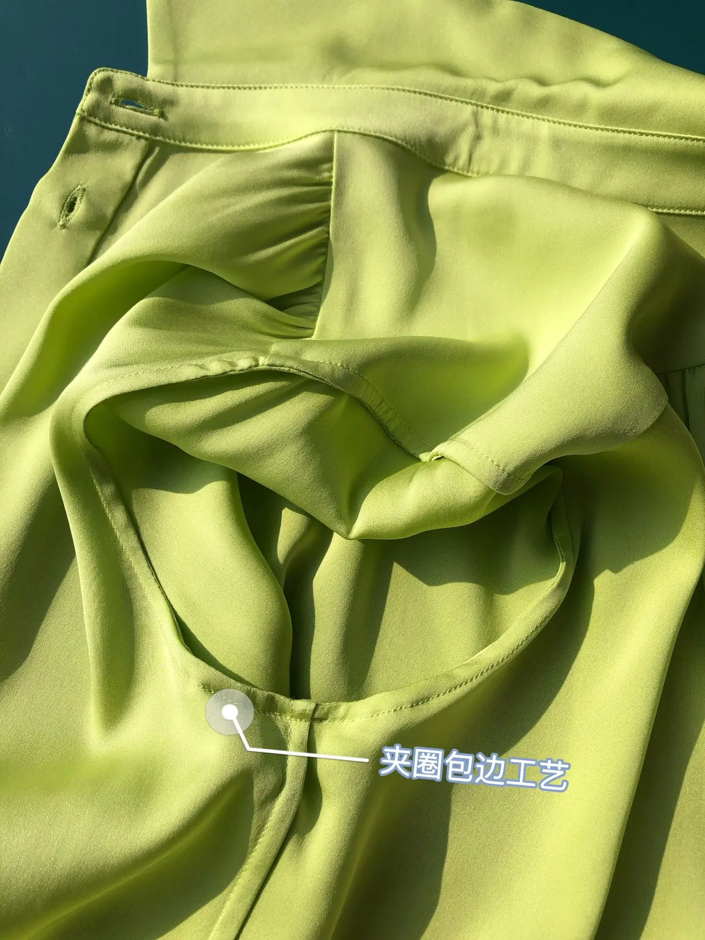 Elegant and Simple Smooth Double Joe Satin Pleated Silk Shirt Elegant Restrained Womens Silk Blouse Mulberry Silk Shirt