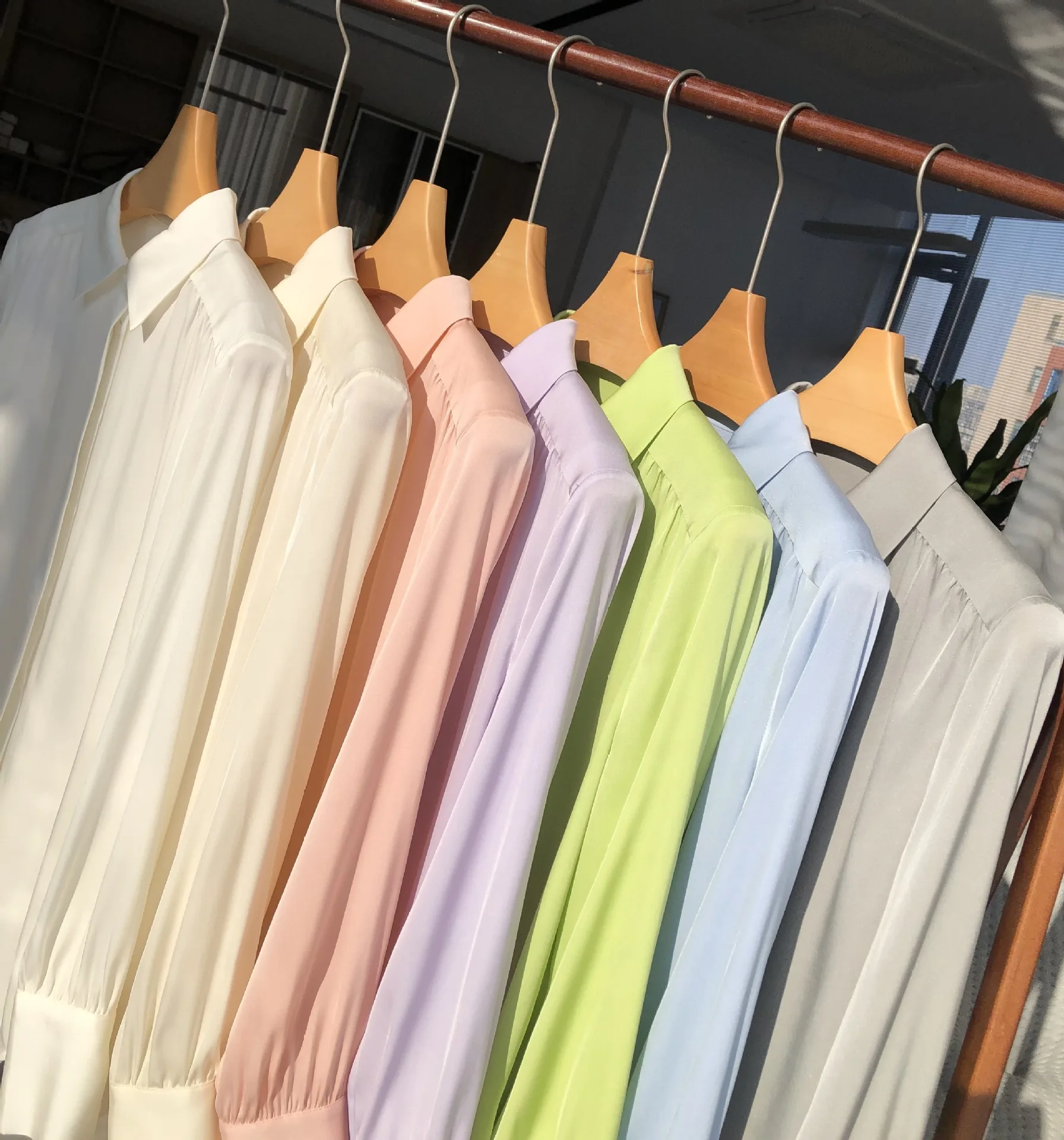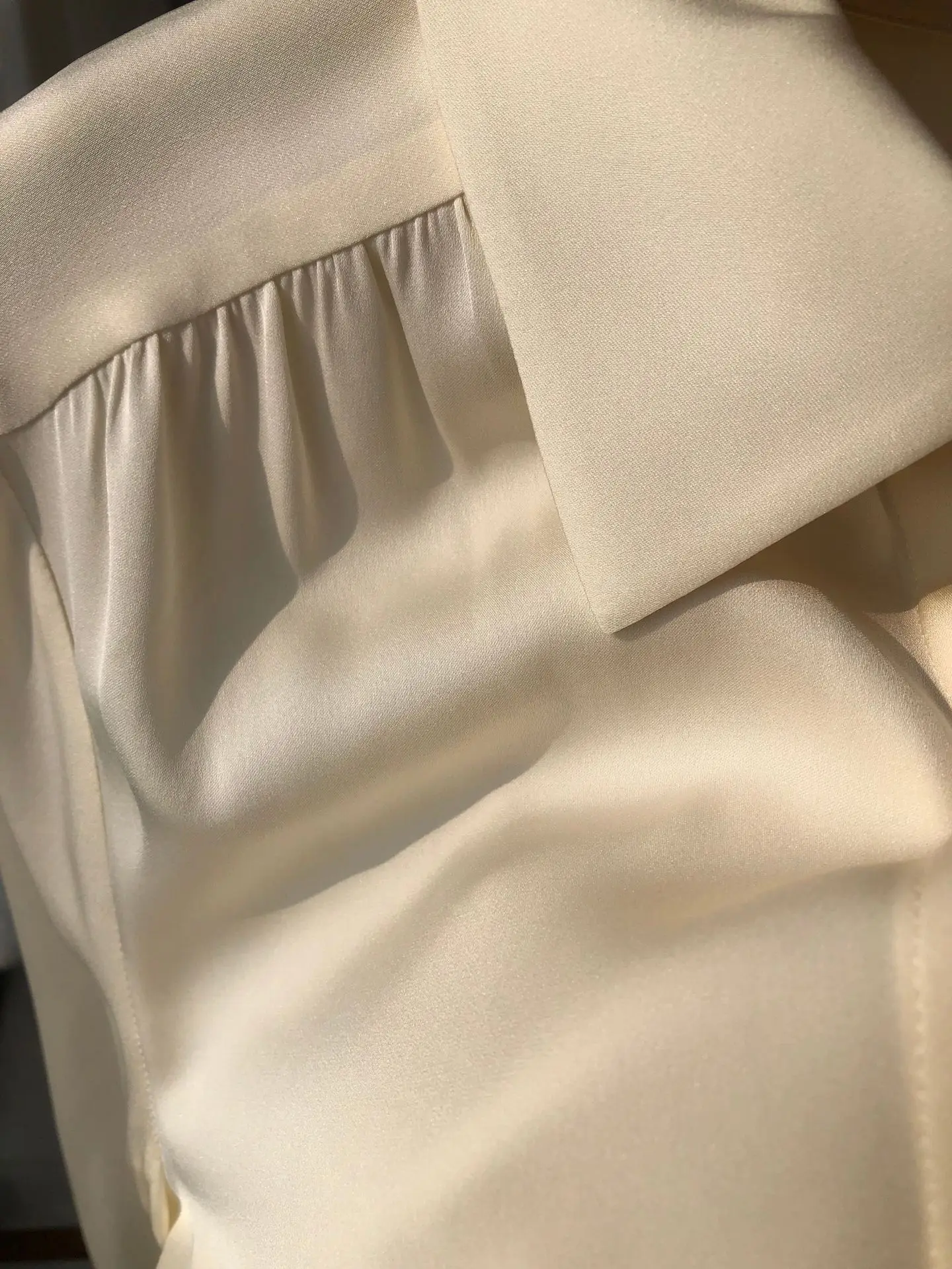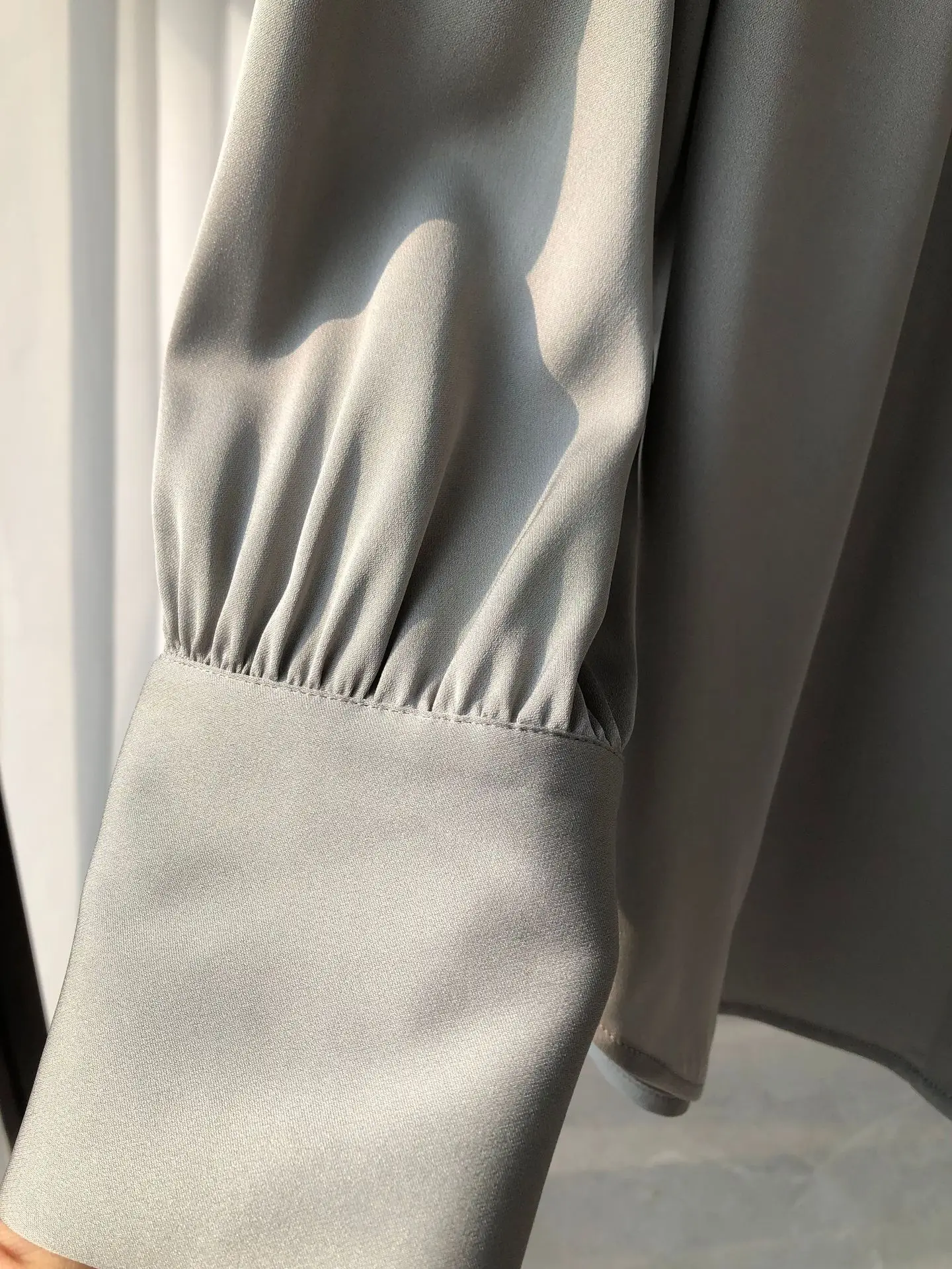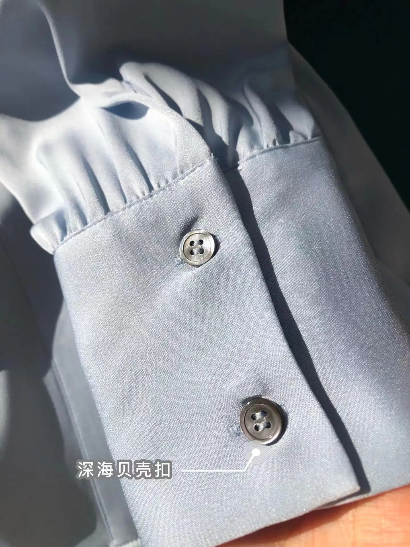 Elegant and Simple Smooth Double Joe Satin Pleated Silk Shirt Elegant Restrained Womens Silk Blouse Mulberry Silk Shirt