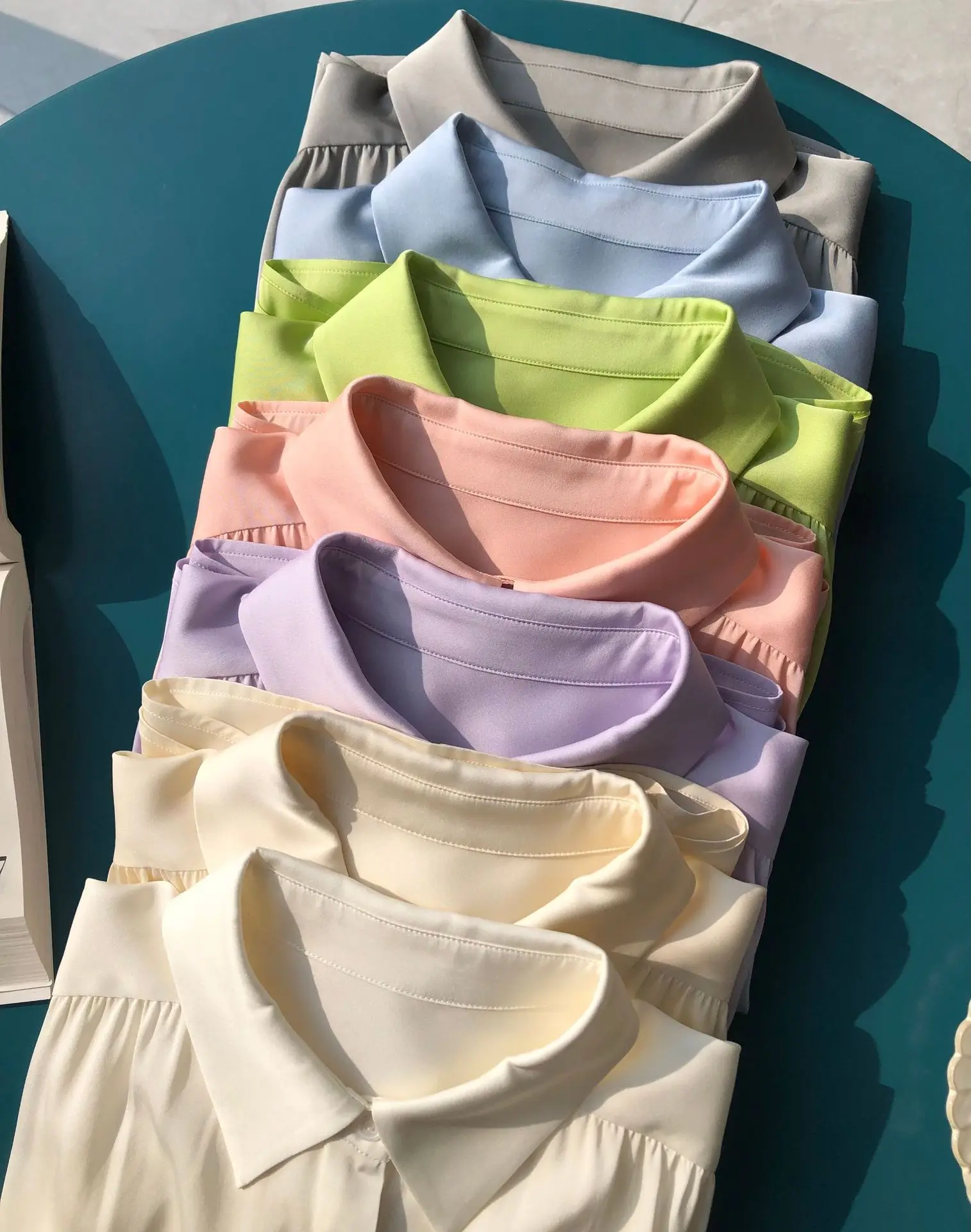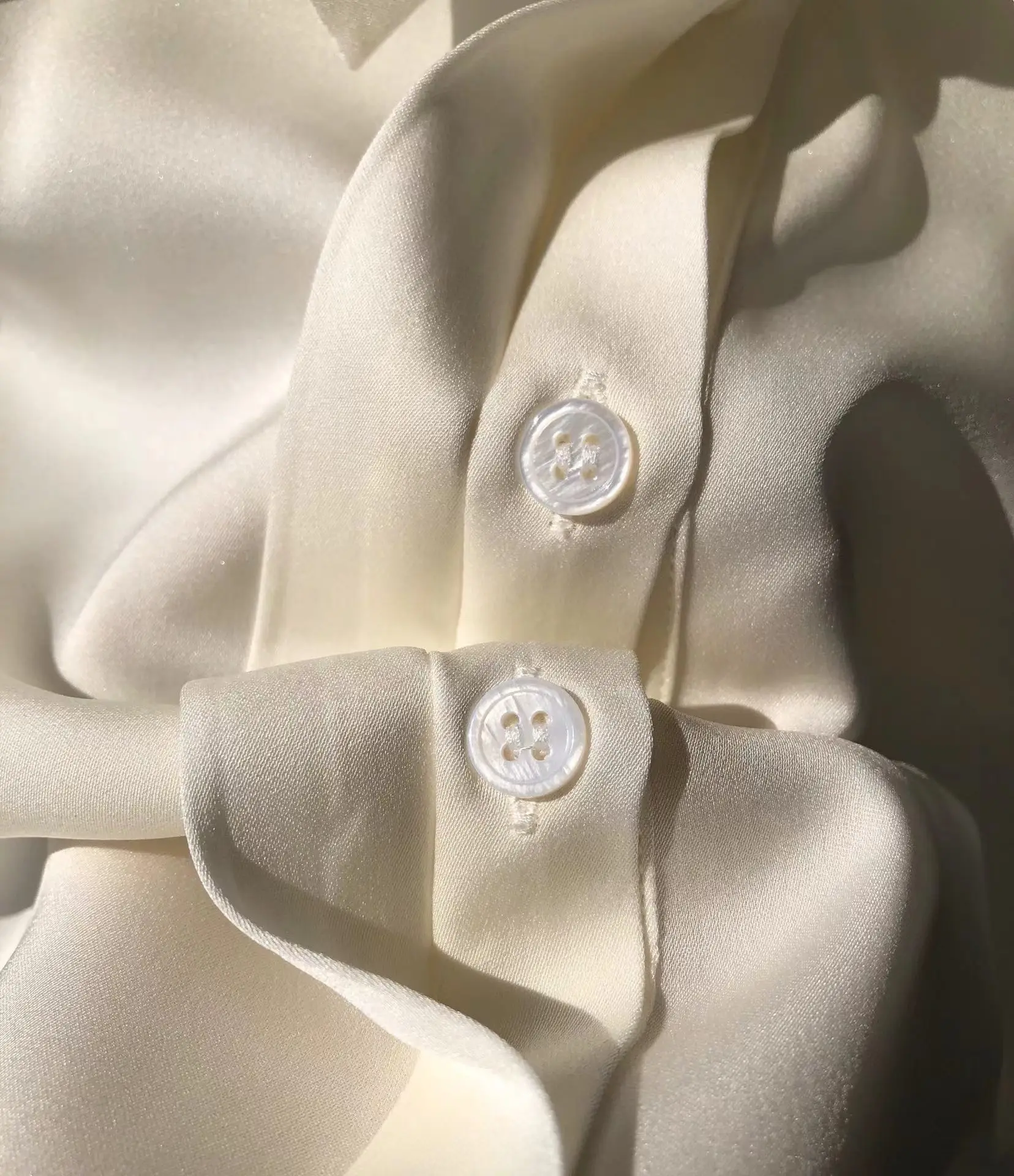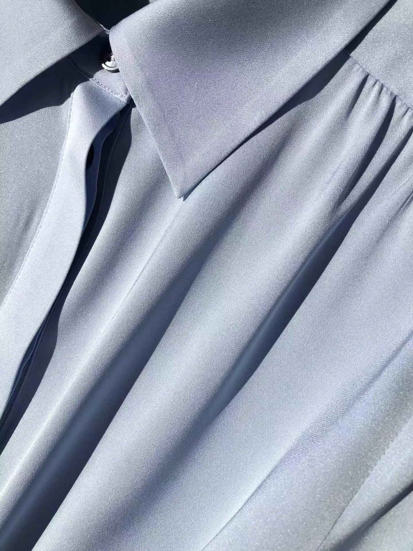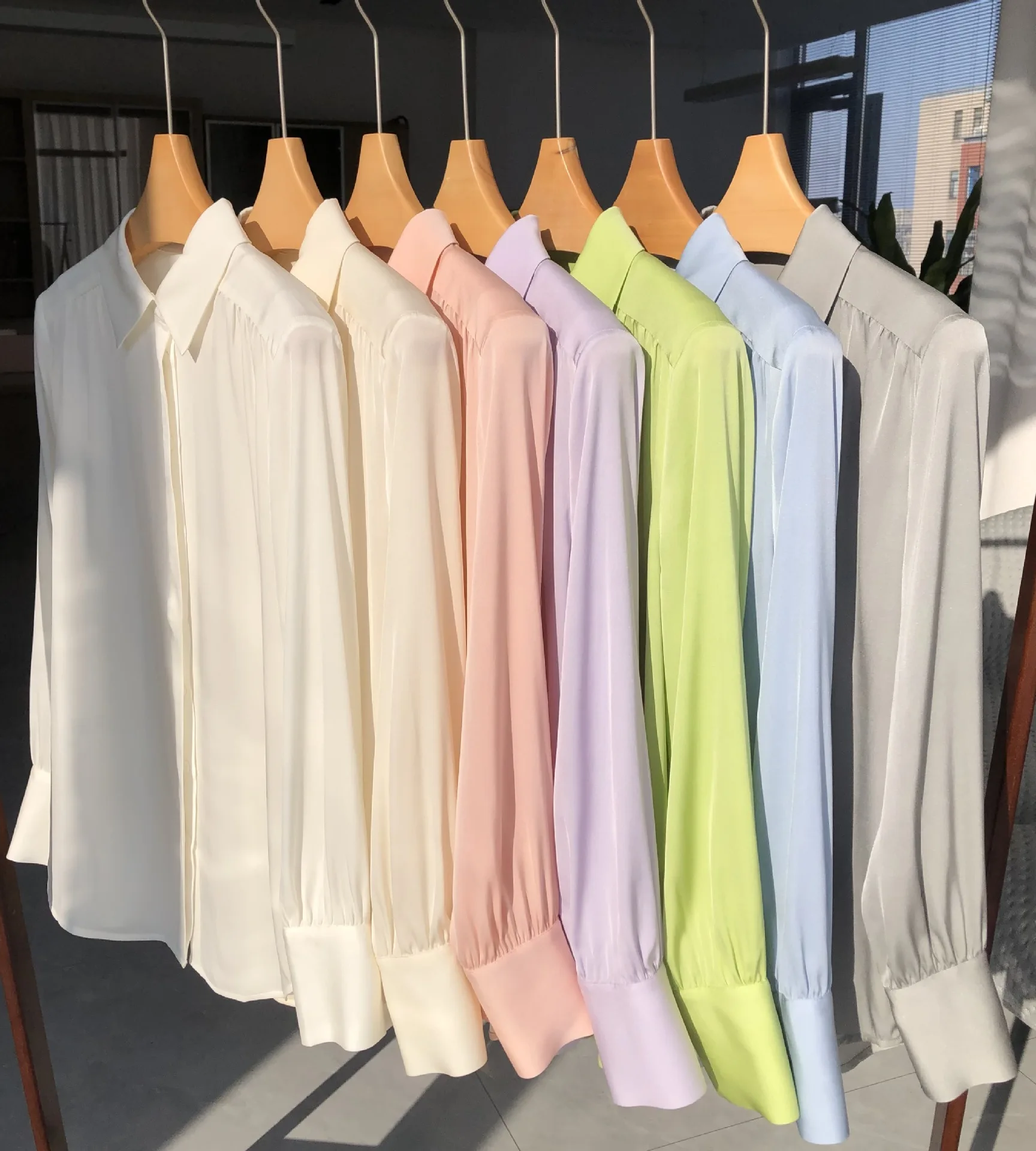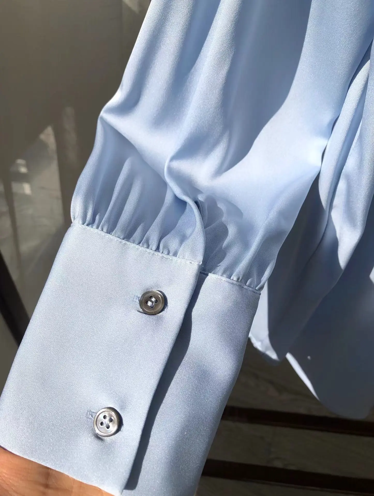 Elegant and Simple Smooth Double Joe Satin Pleated Silk Shirt Elegant Restrained Womens Silk Blouse Mulberry Silk Shirt