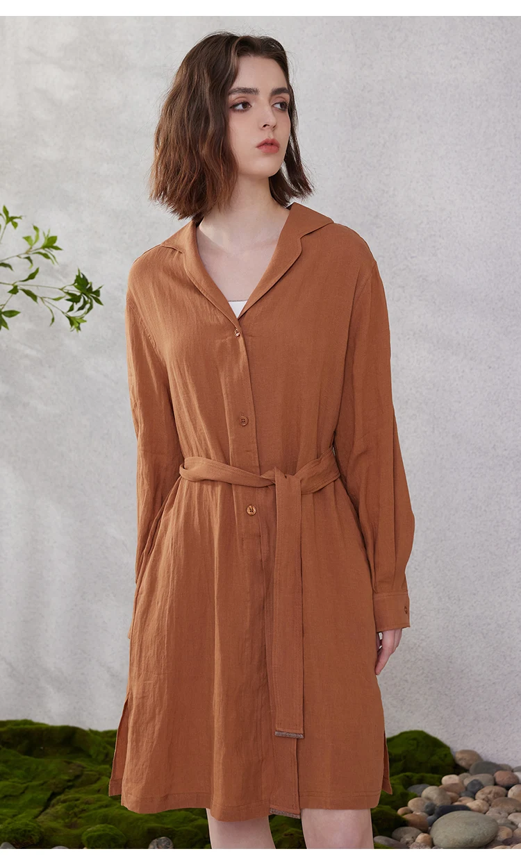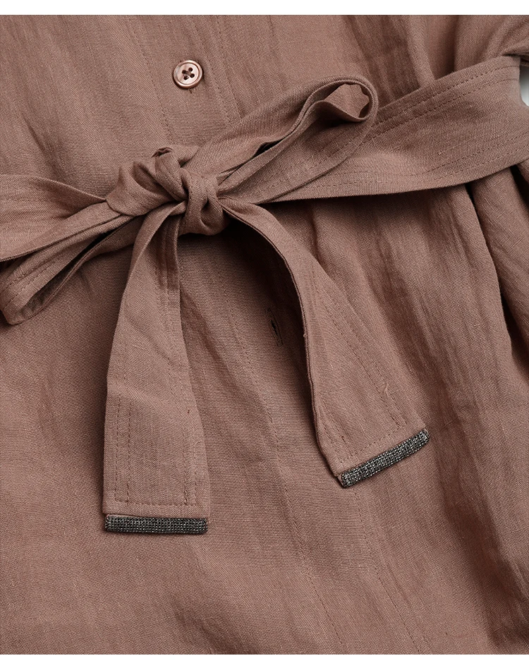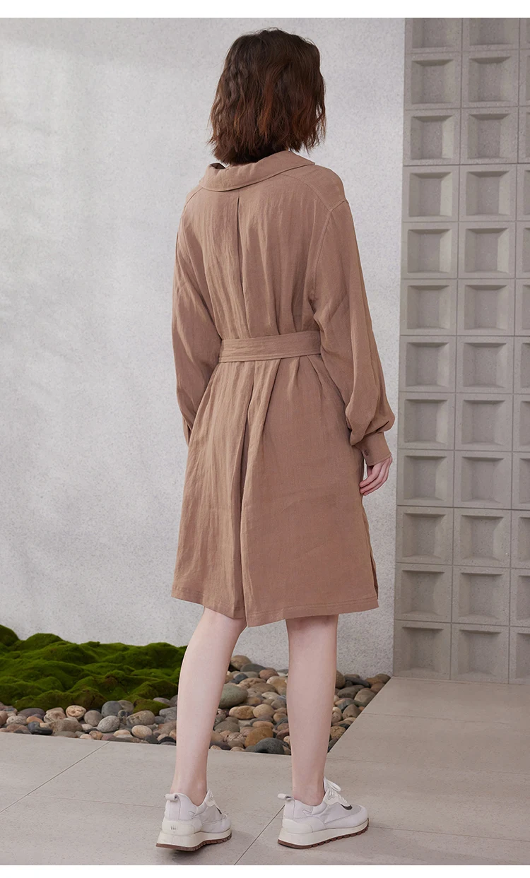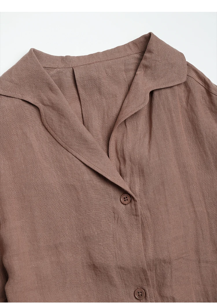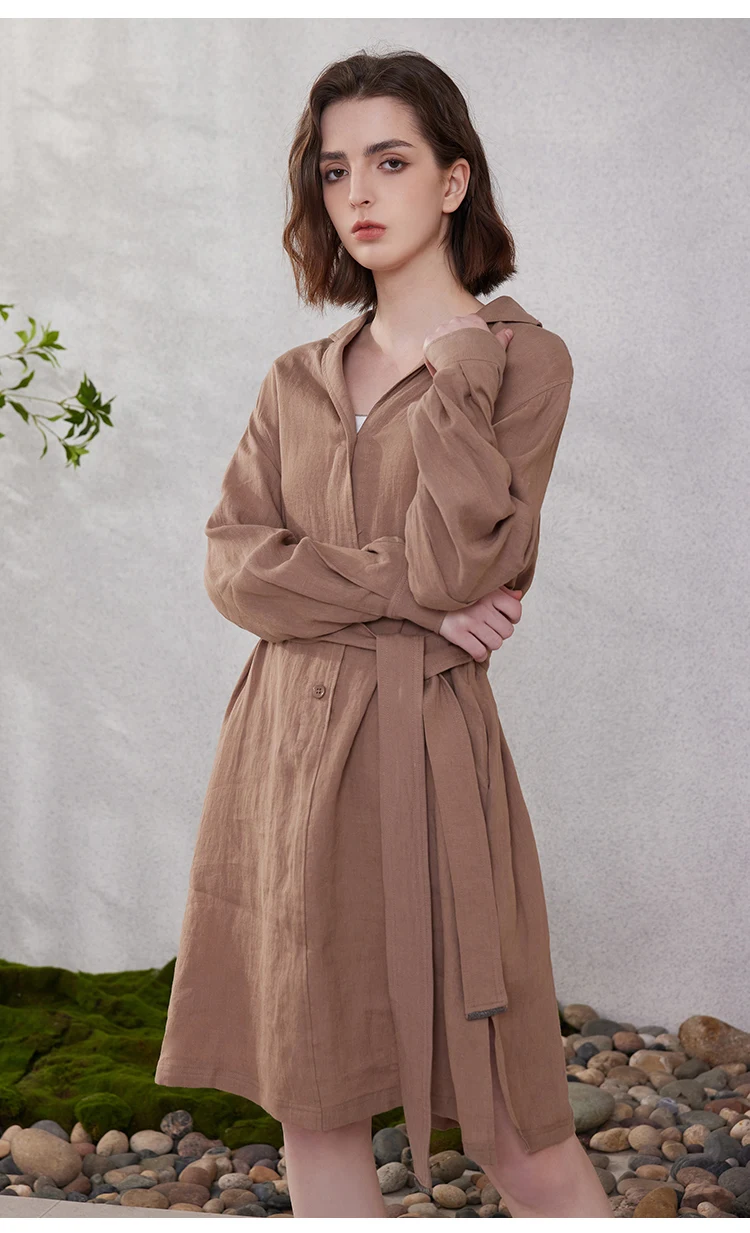 K2059L Luxury Brand Clothing for Women Ladies Shirt Dress Blouse Dresses 100% Pure Linen Clothes
