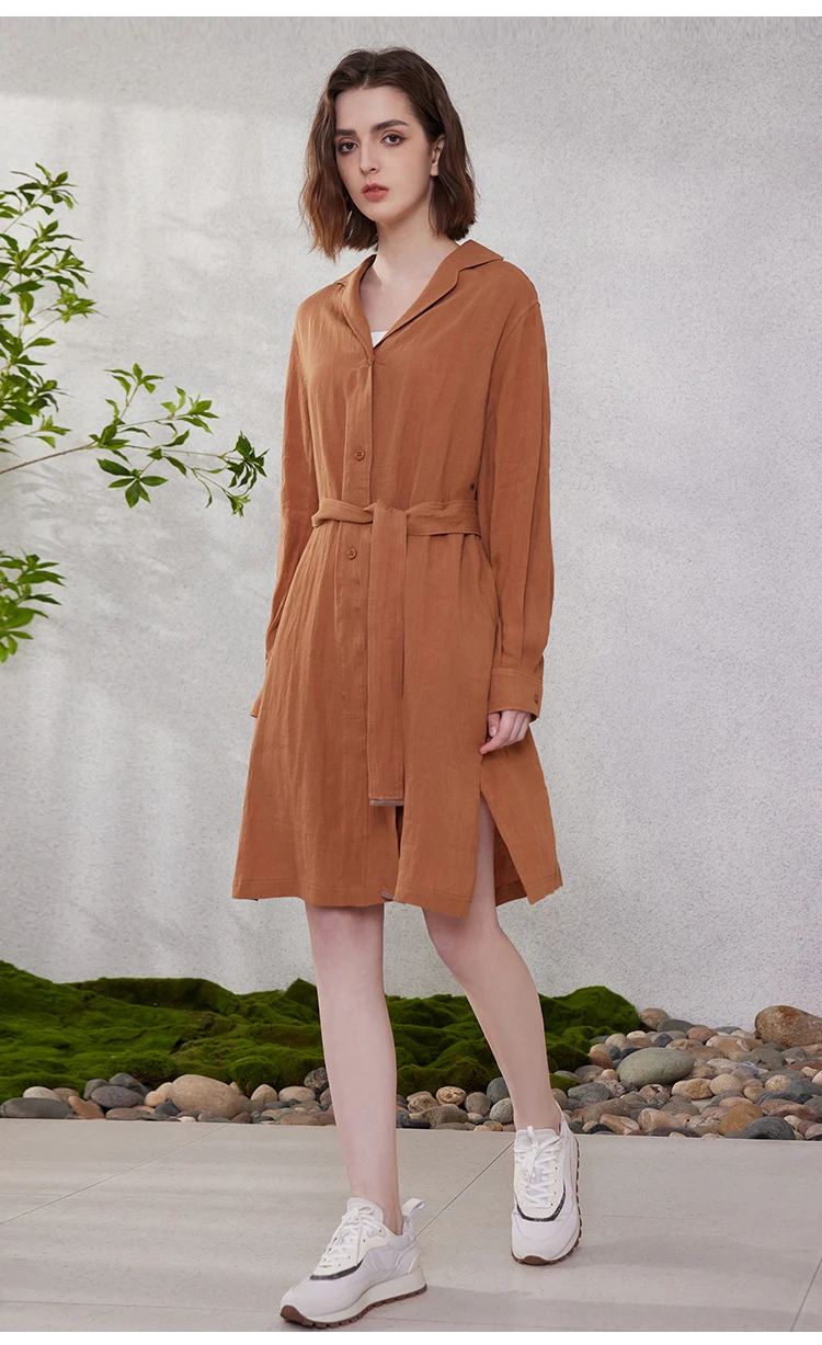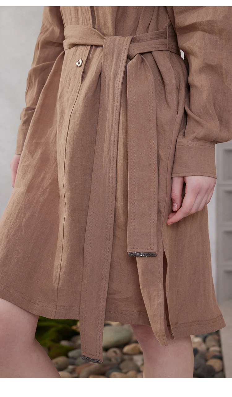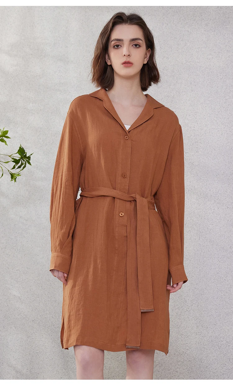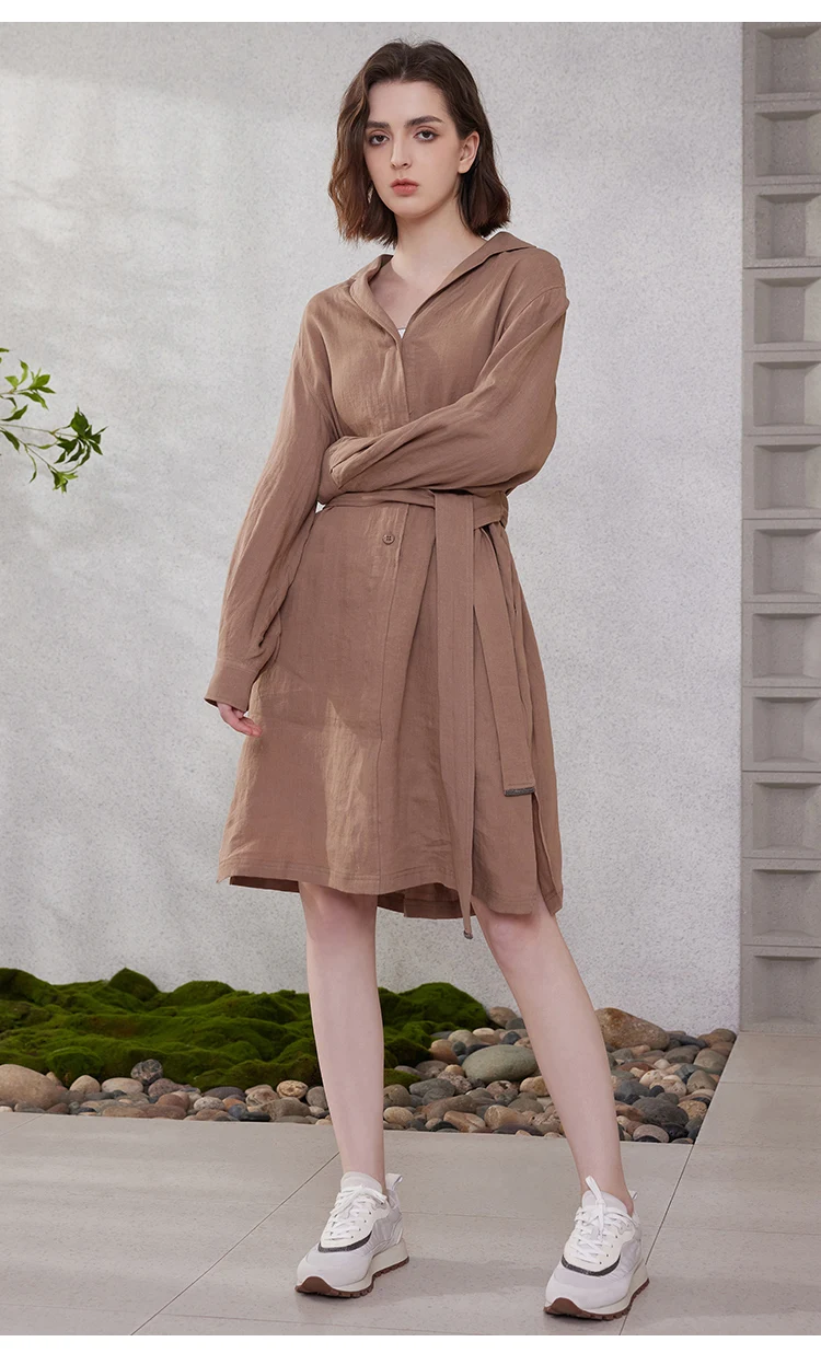 K2059L Luxury Brand Clothing for Women Ladies Shirt Dress Blouse Dresses 100% Pure Linen Clothes
