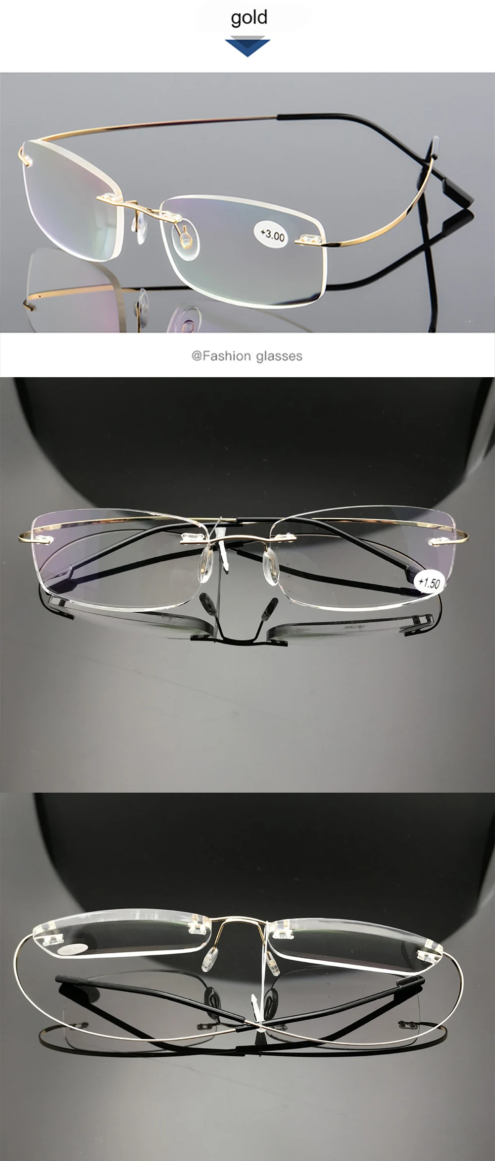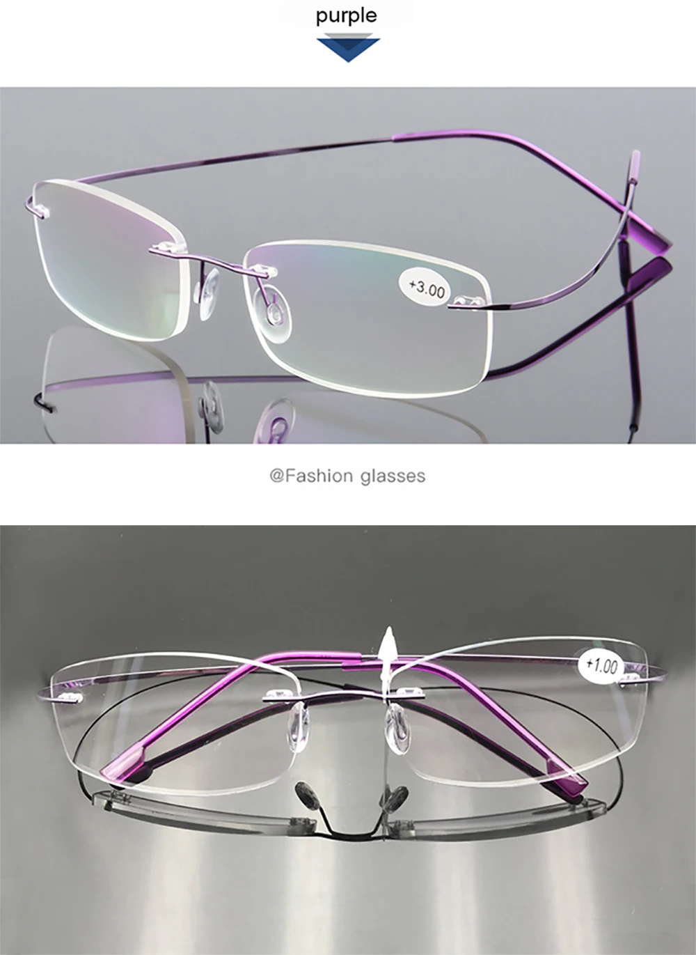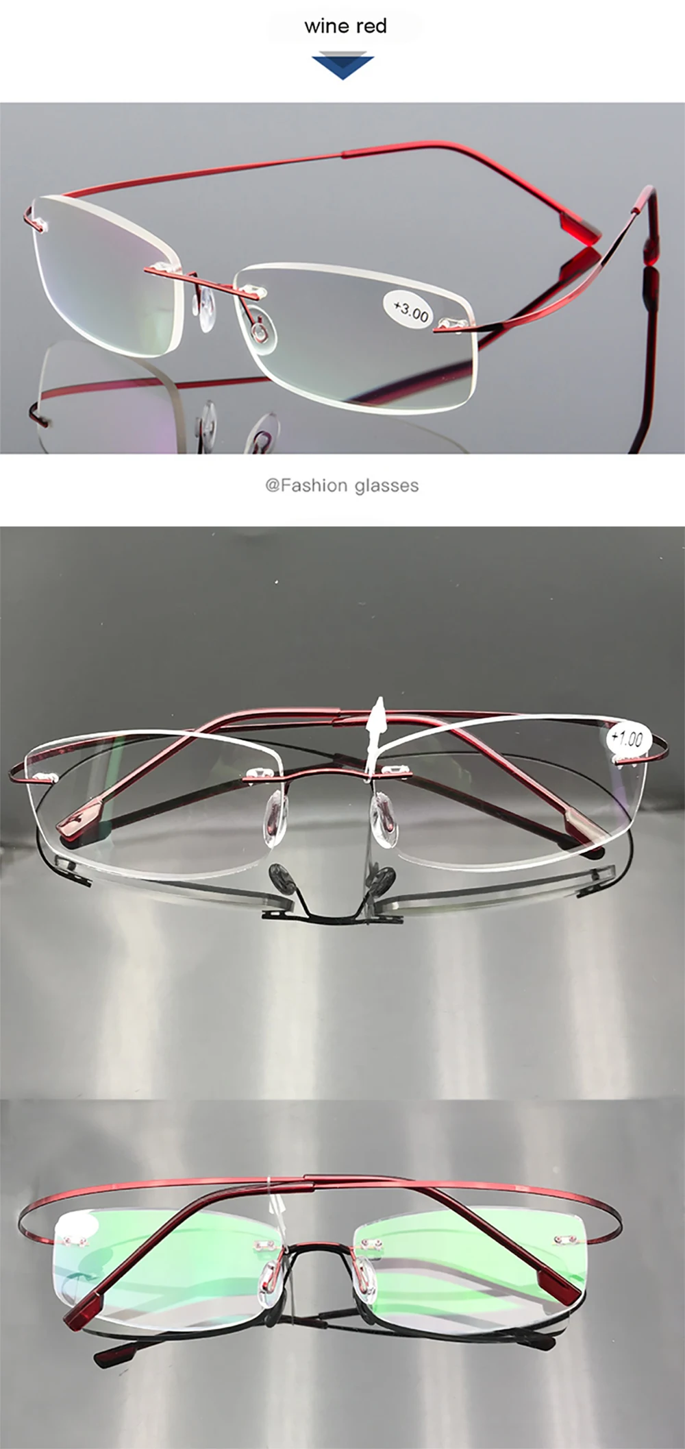 May Flower Titanium Alloy Rimless Reading Glasses Light Square Flexible Blue Proof Glasses Frame Women Anti-Blue Glasses Men