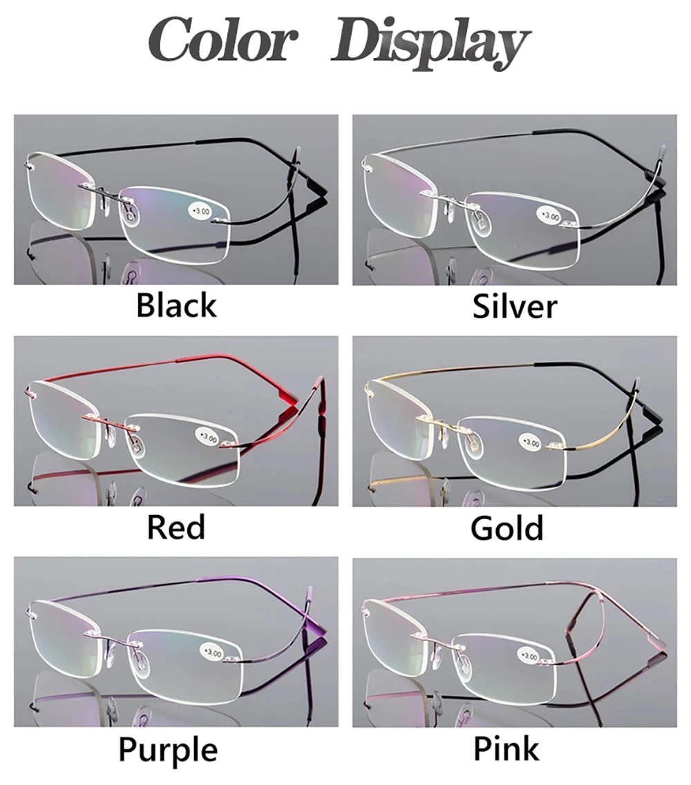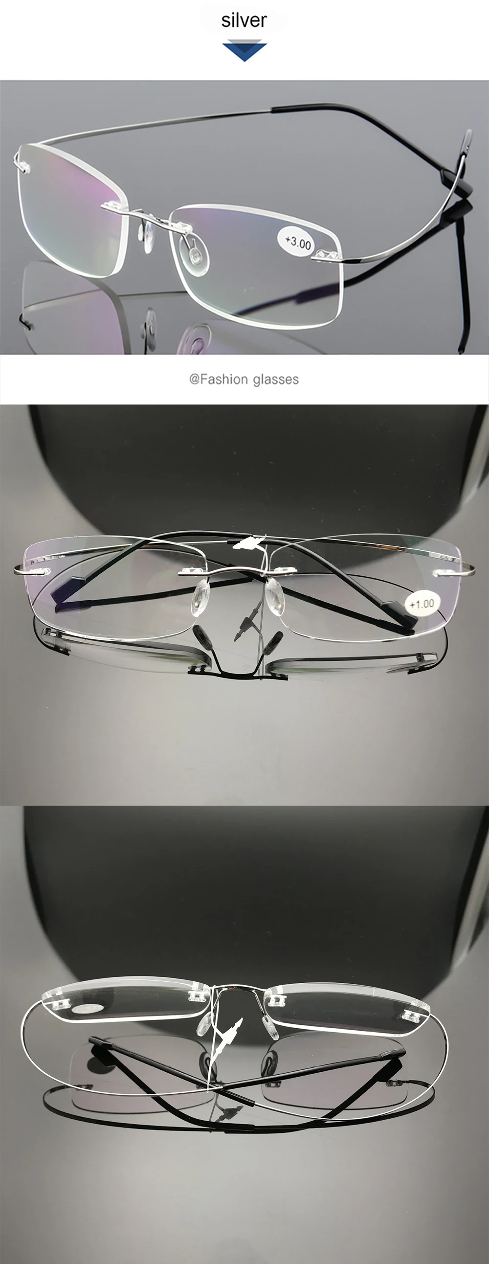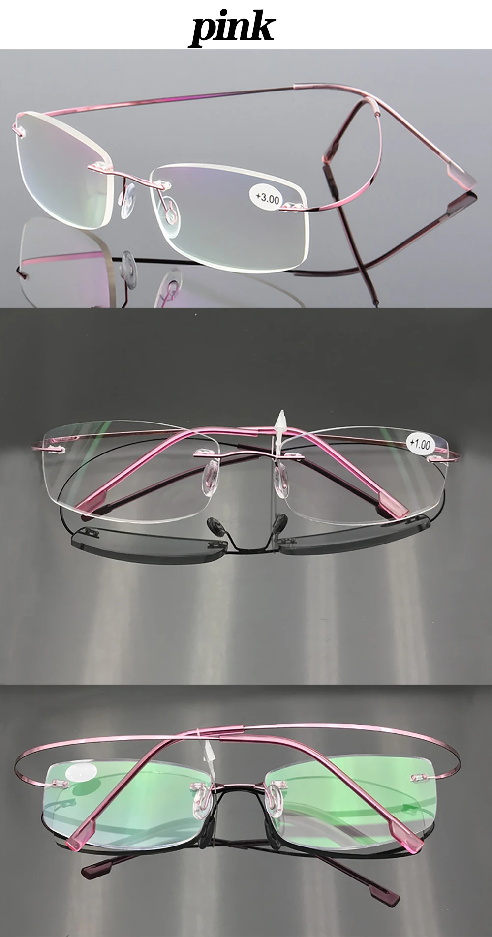 May Flower Titanium Alloy Rimless Reading Glasses Light Square Flexible Blue Proof Glasses Frame Women Anti-Blue Glasses Men