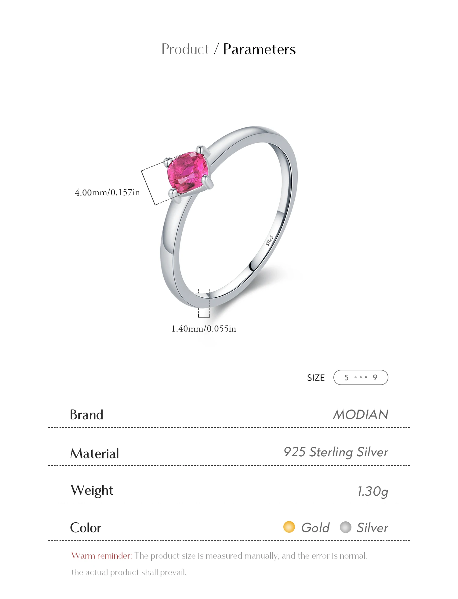 MODIAN 925 Sterling Silver Pigeon Blood Red Zircon Finger Rings For Women White Gold Plated Chic Stackable Rings Fine Jewelry