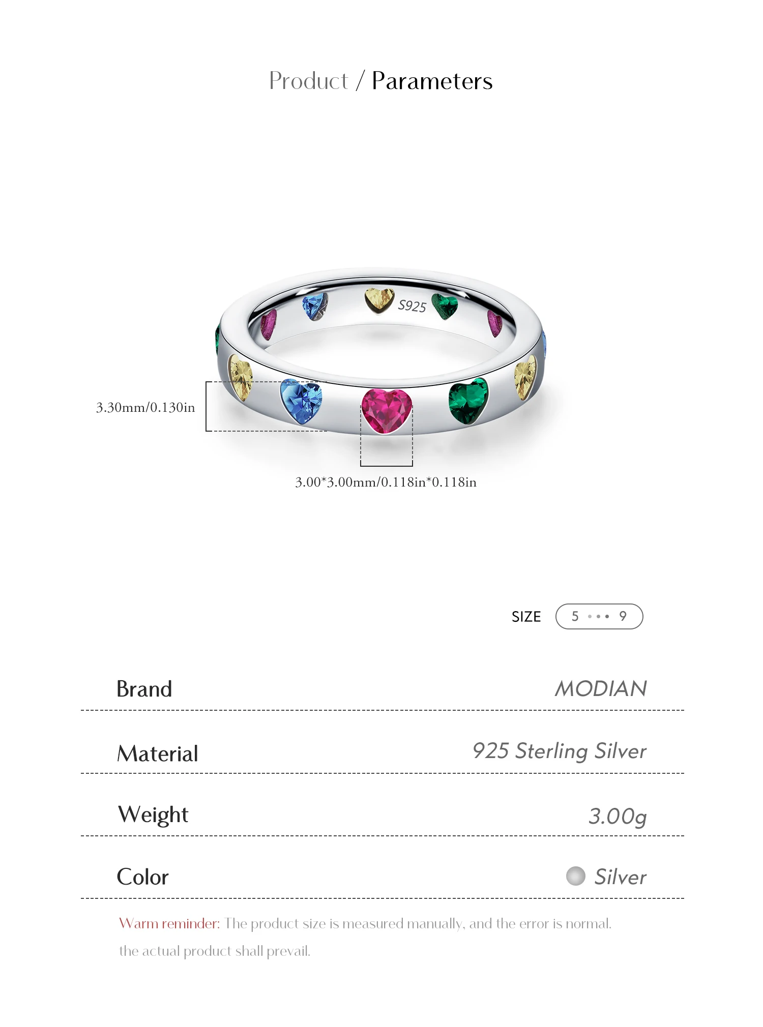 MODIAN 925 Sterling Silver Sweet Romantic Colorful Zircon Heart Stackable Eternity Band Trendy Rings For Women Fine Jewelry