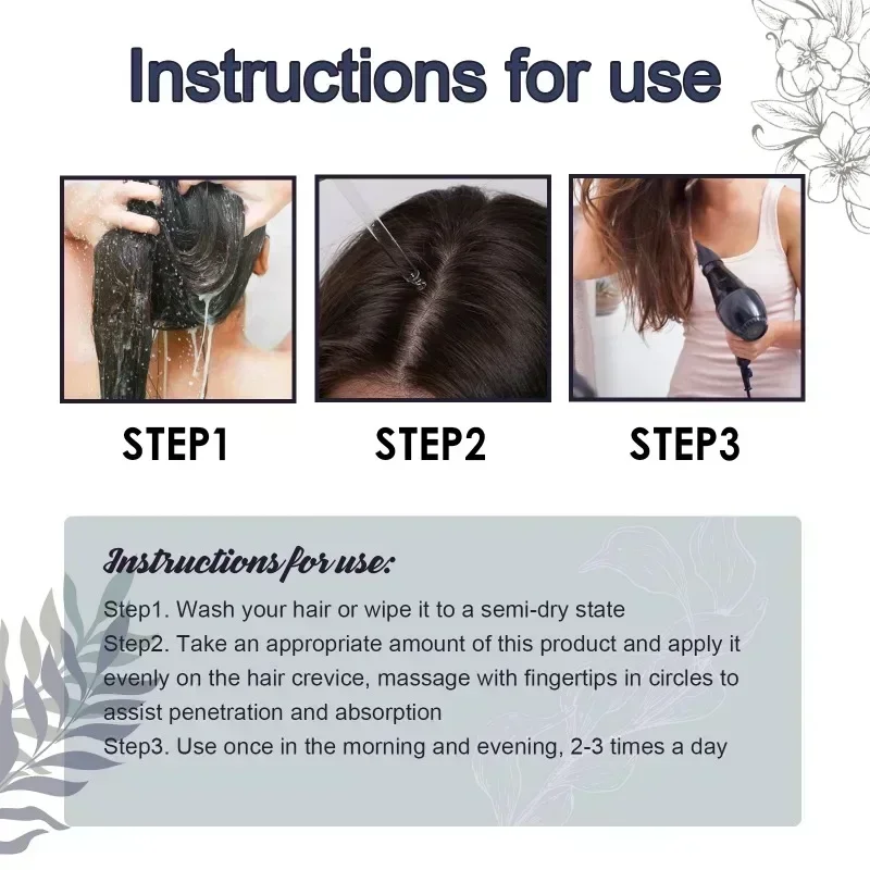 1. Aide à améliorer l'environnement du cuir chevelu, réveille les follicules pileux, complète la nutrition et rend les cheveux noirs.
